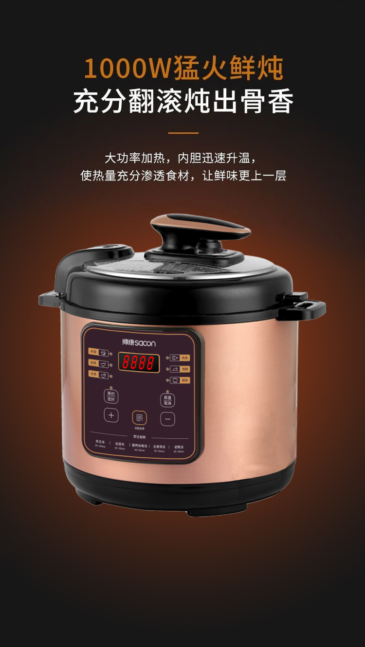 帅康(Sacon) YLAM-5A 5L 双胆电压力锅 香槟色(单位:台)