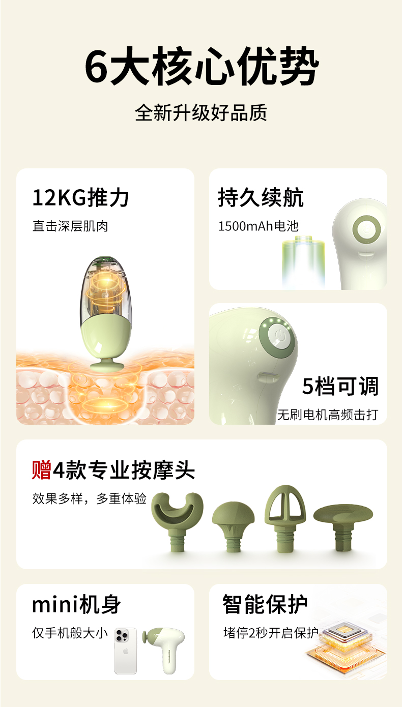 和正(HEZHENG) HZ-JMQ-10 5档调节 新品mini款筋膜枪 清新色(单位:个)