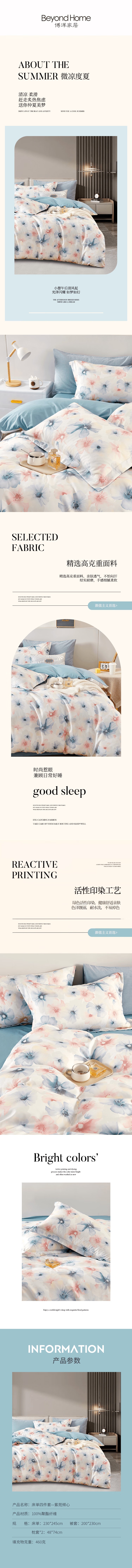 博洋(BEYOND) WT922407002A 被套:200*230cm 床品四件套—紫苑倾心 印花粉(单位:套)