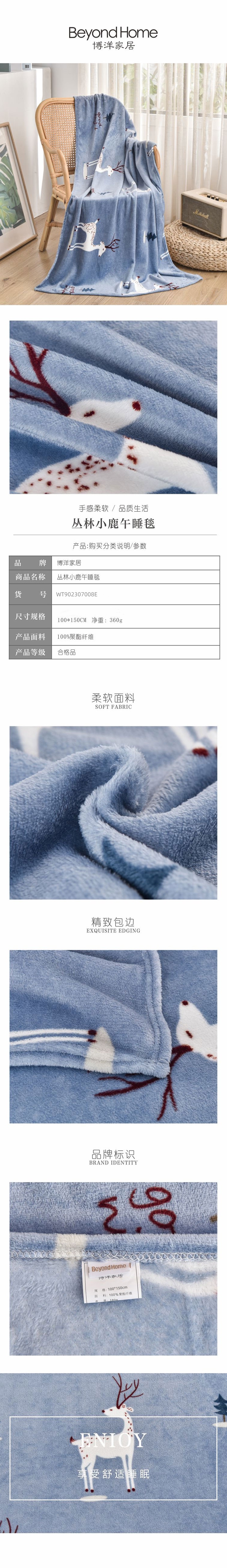 博洋(BEYOND) WT902307008E 100*150cm 丛林小鹿午睡毯 蓝色(单位:条)
