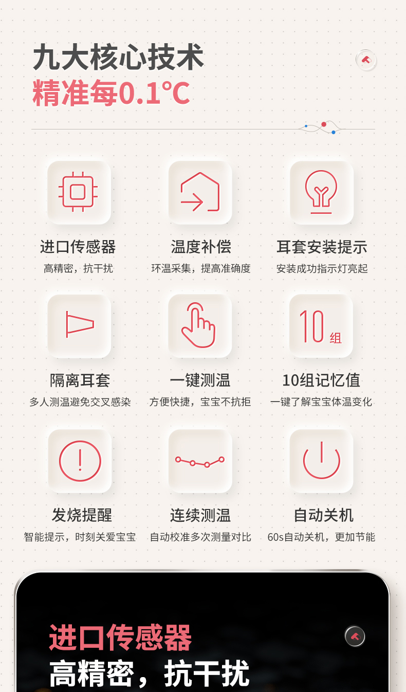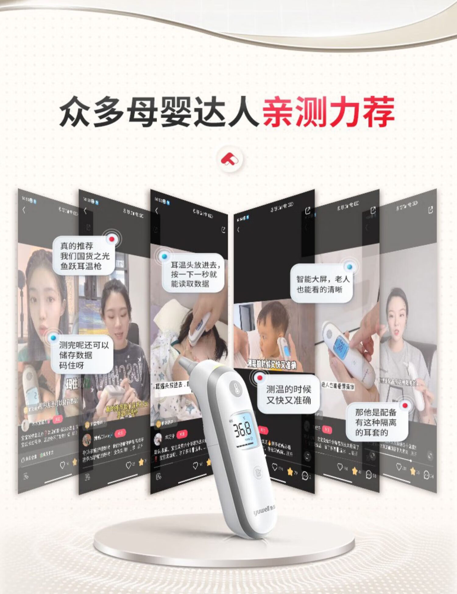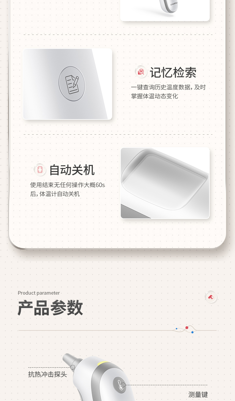 鱼跃(Yuwell) YHT100 入耳式 红外耳温枪体温计 白色(单位:台)