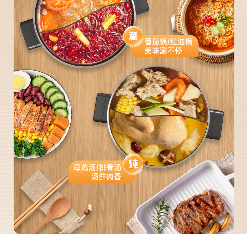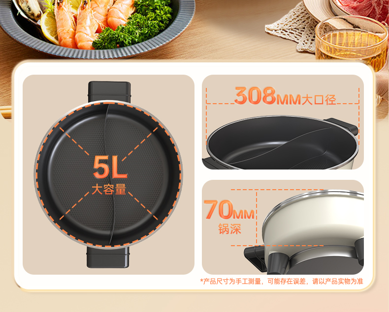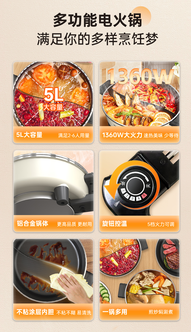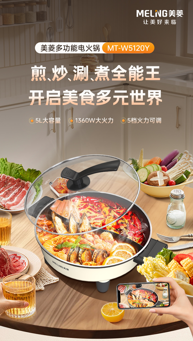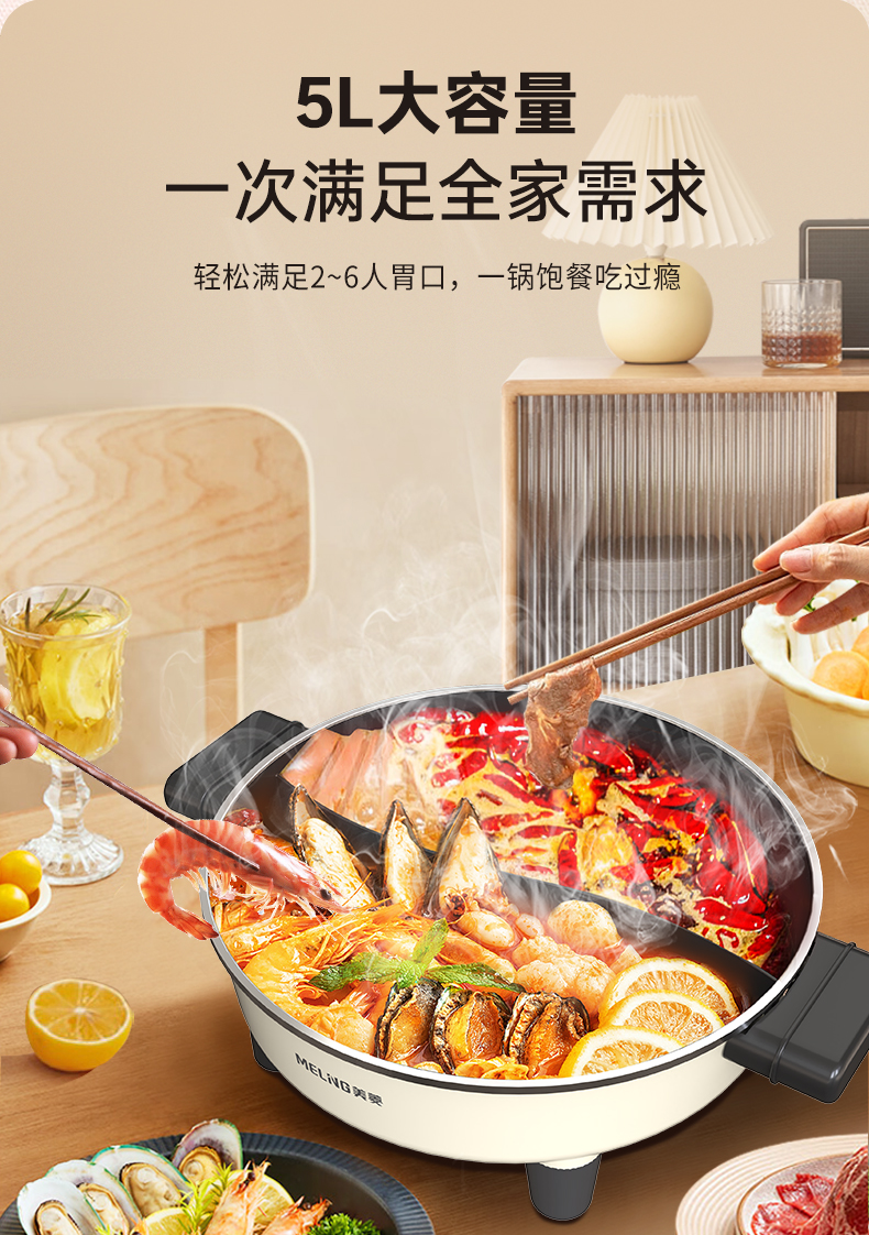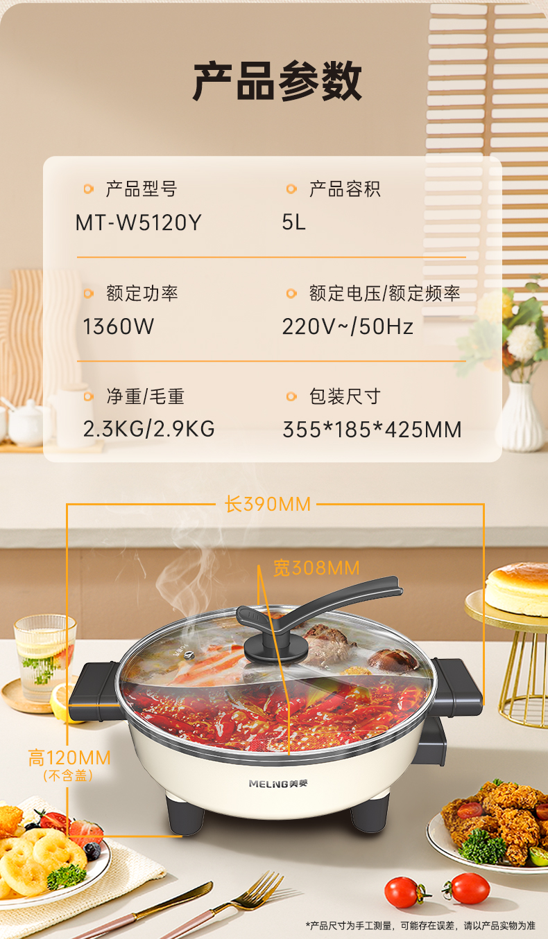美菱(MeiLing) MT-W5120Y 5L 鸳鸯电火锅 象牙色(单位:台)