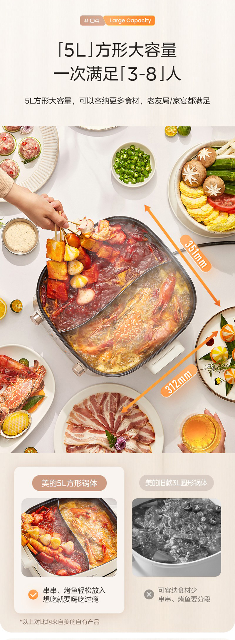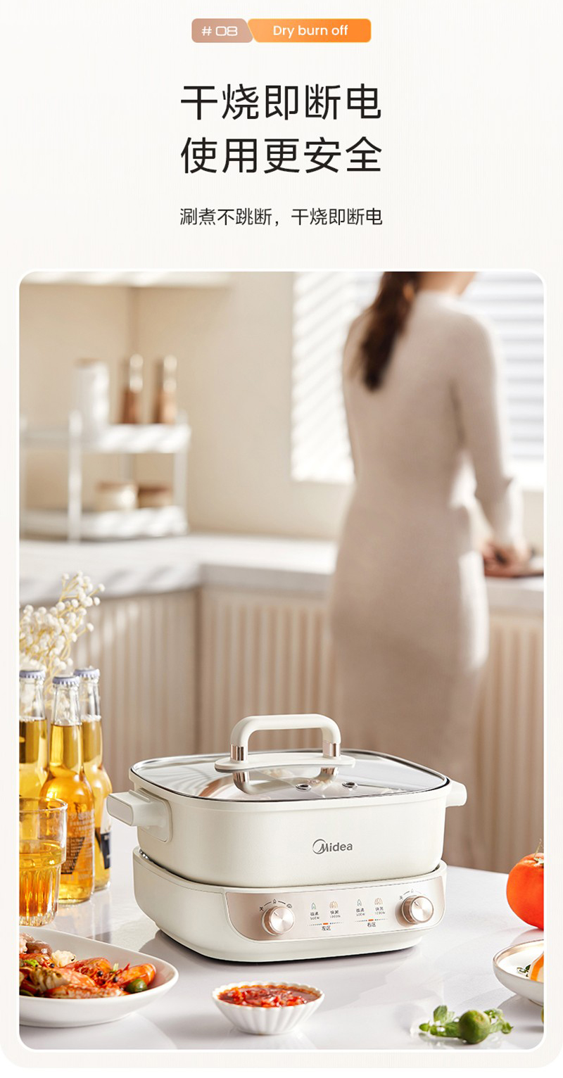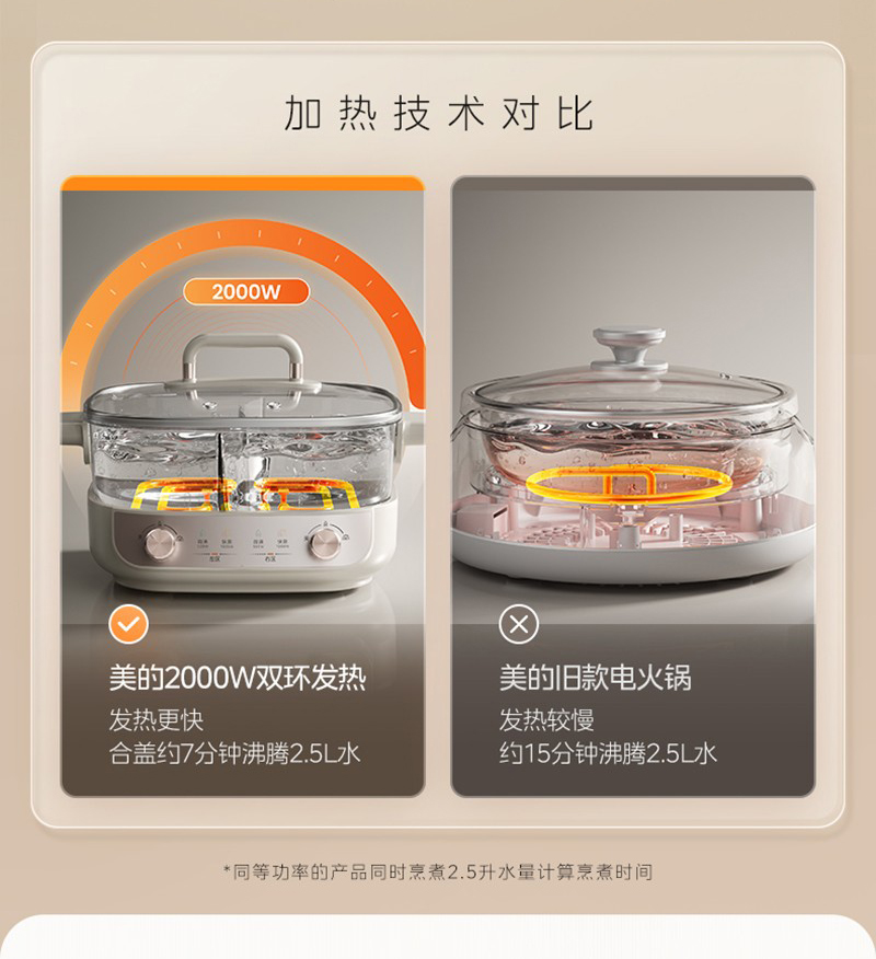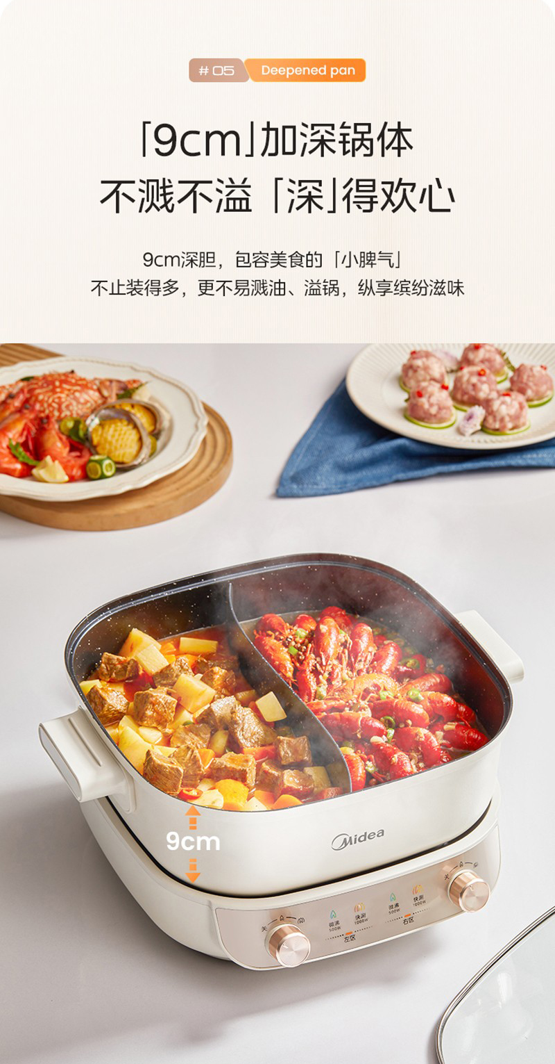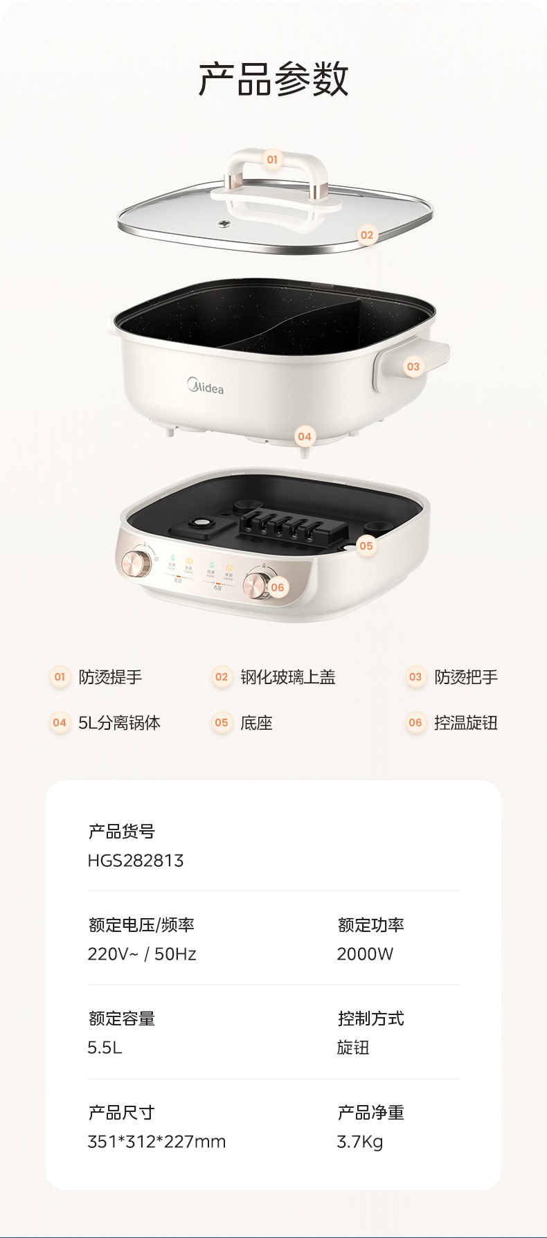 美的(Midea) HGS282813 5.5L 电火锅 白色(单位:个)