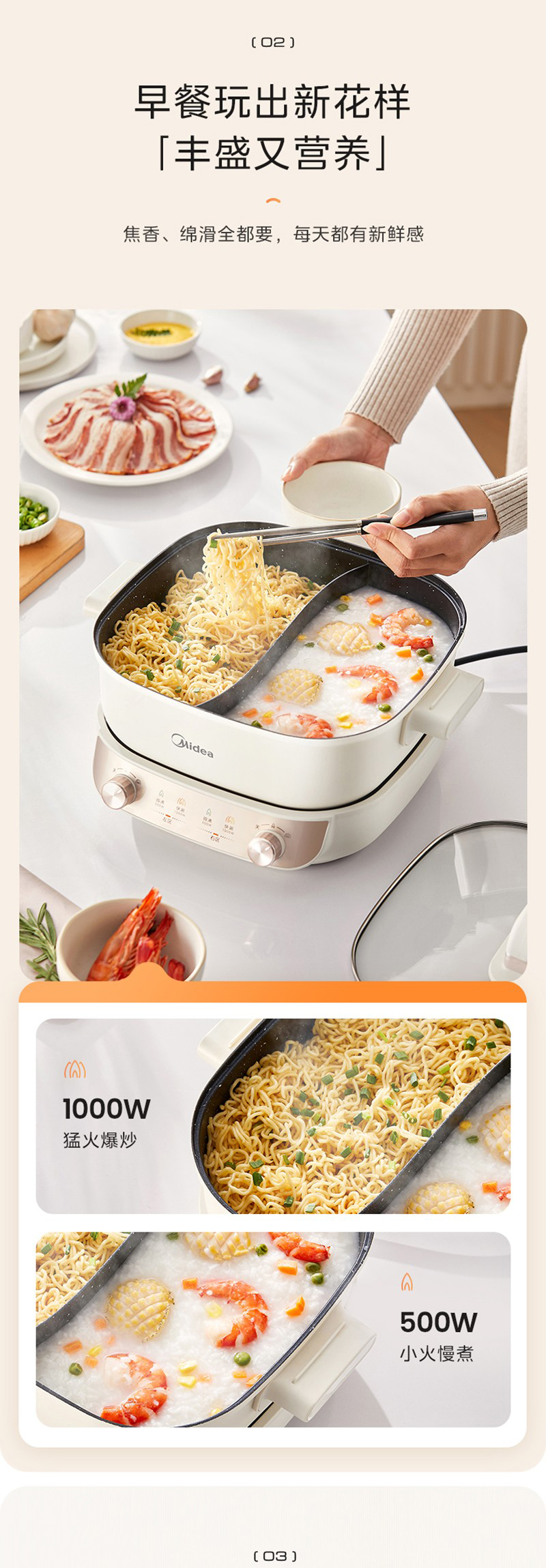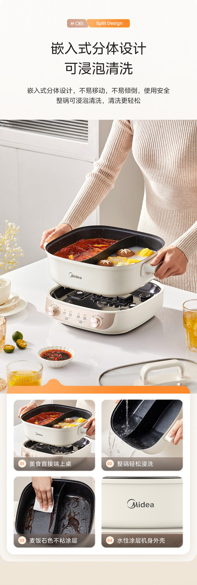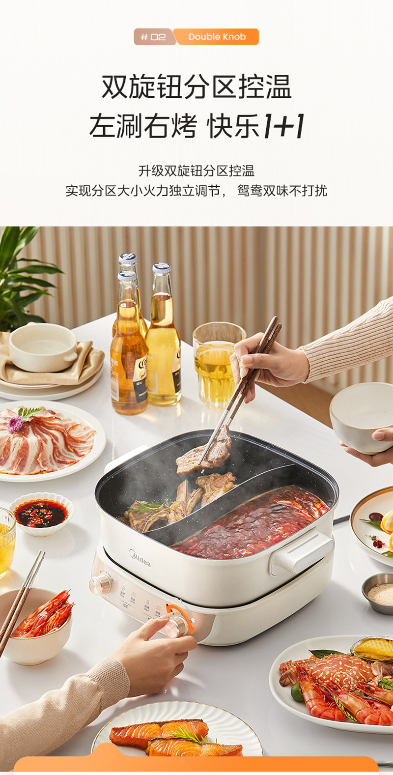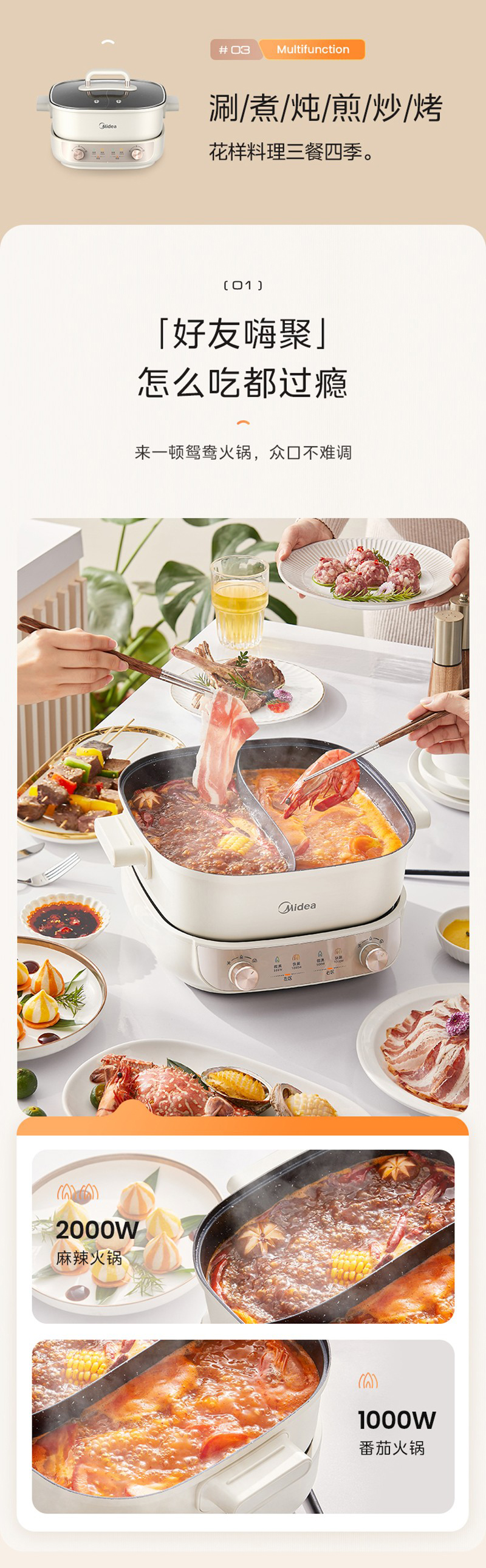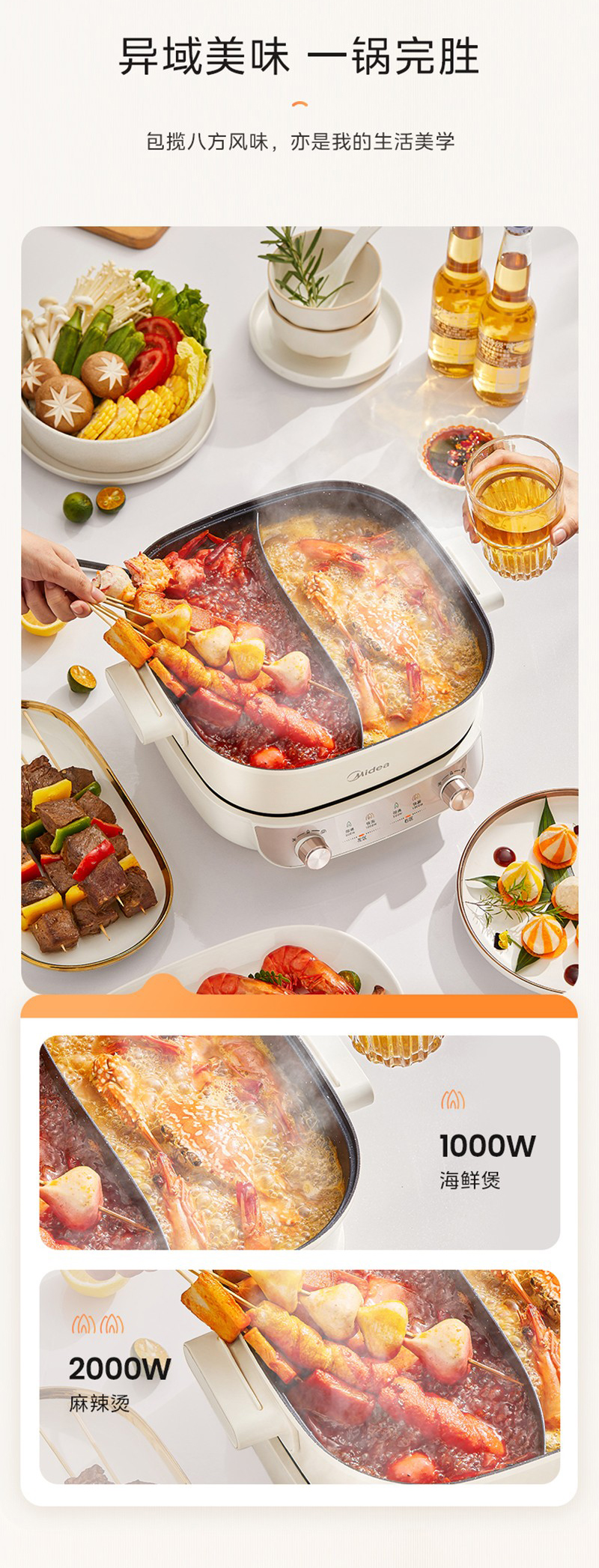 美的(Midea) HGS282813 5.5L 电火锅 白色(单位:个)