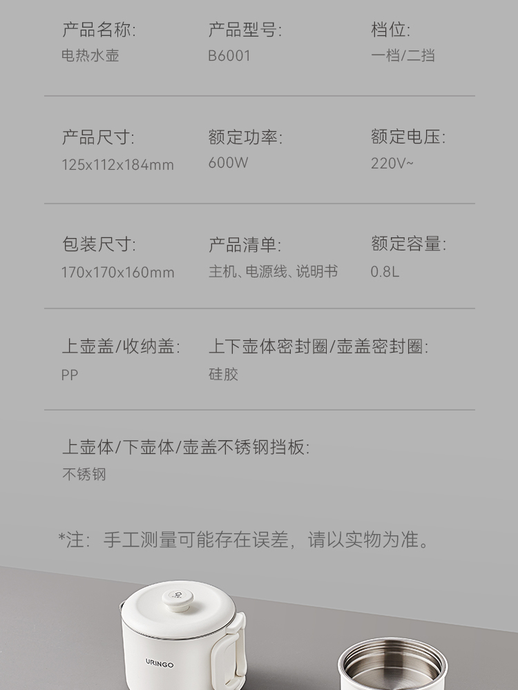 七彩叮当(QICAIDINGDANG) B6001 0.8L 折叠水壶 白色(单位:台)