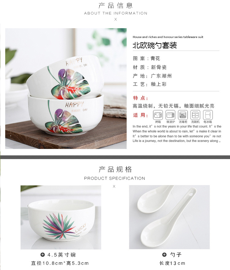 颐电 CQ-001 十二件套 六碗六勺陶瓷餐具套装 混色(单位:套)