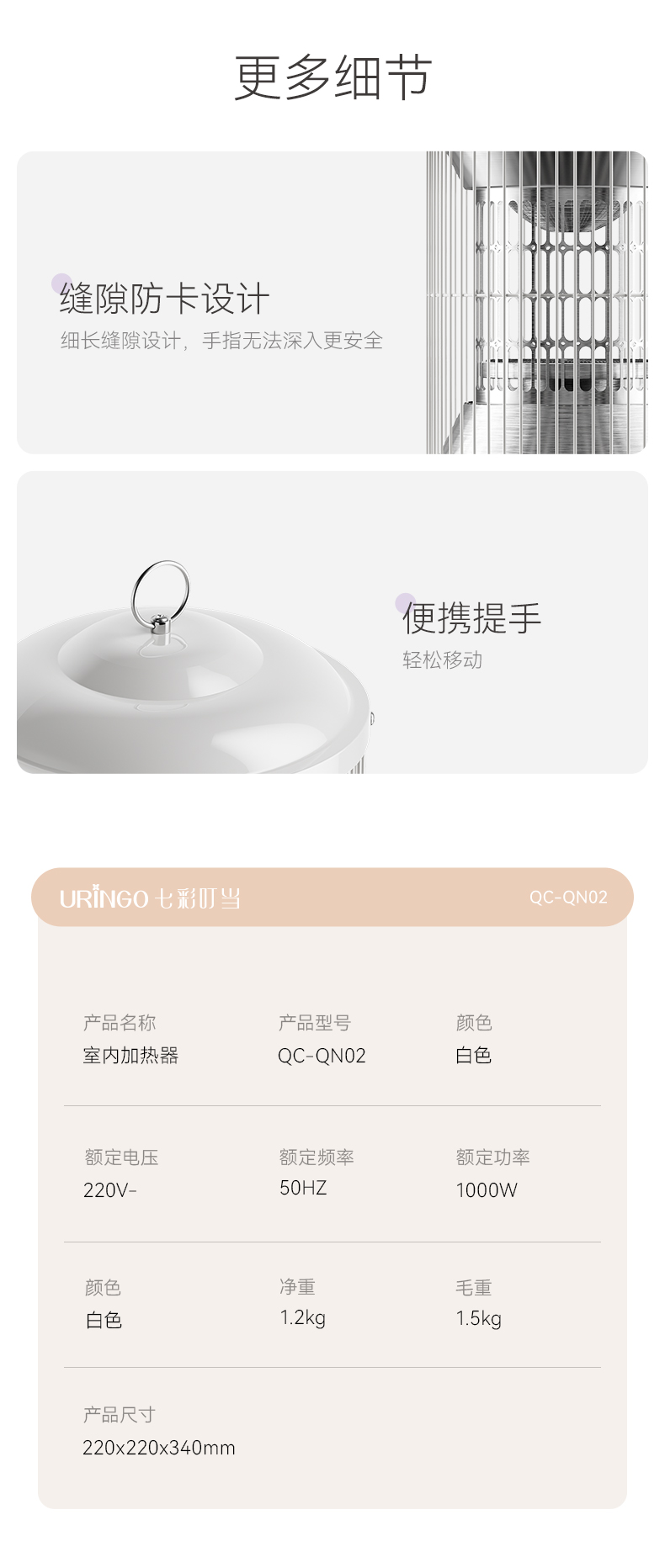 七彩叮当(QICAIDINGDANG) QC-QN02 1000W 取暖器 白色(单位:台)