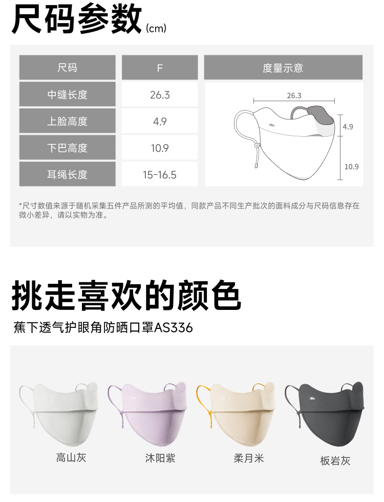 蕉下(beneunder) 护眼角防晒口罩 AS336 26.3*4.9*10.9cm 板岩灰(单位:个)