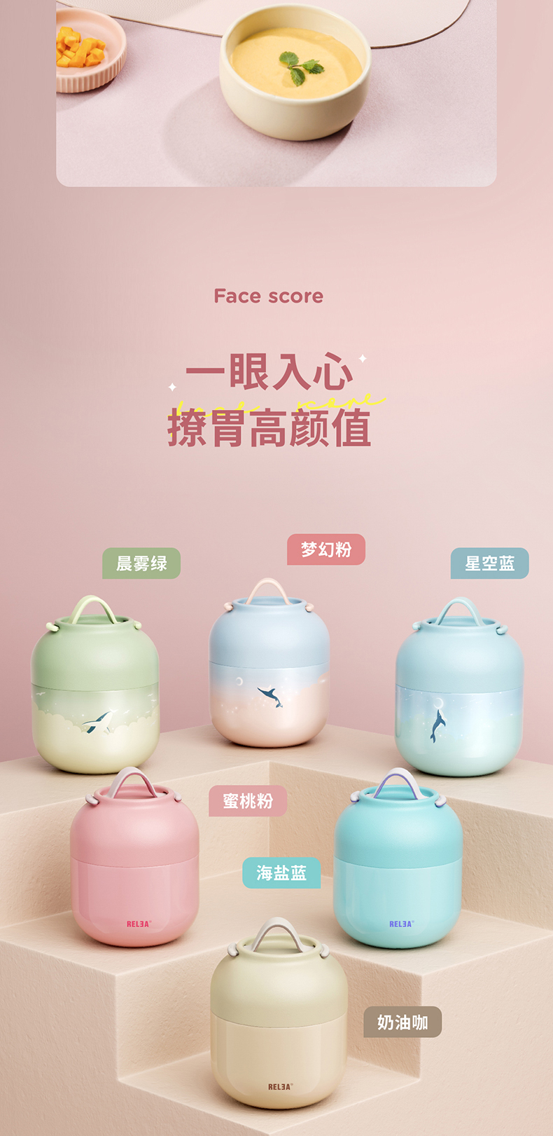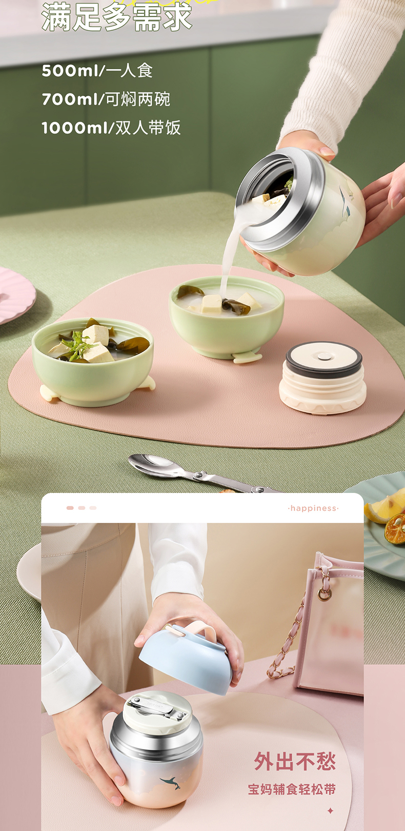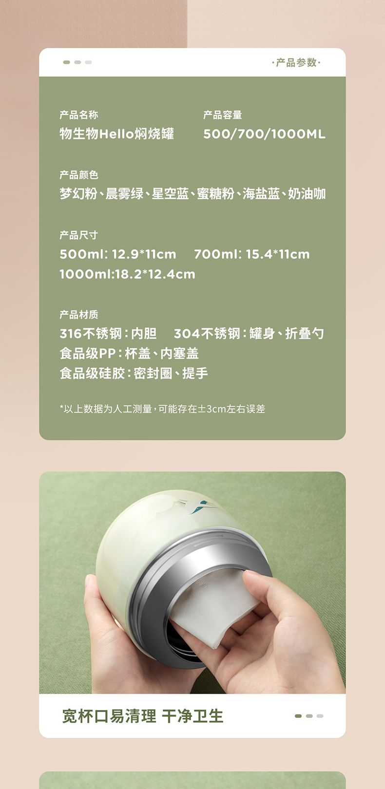 物生物(RELEA) JV032101-0700-BS00 316不锈钢 700ML HELLO焖烧罐 奶牛喵喵白(单位:个)