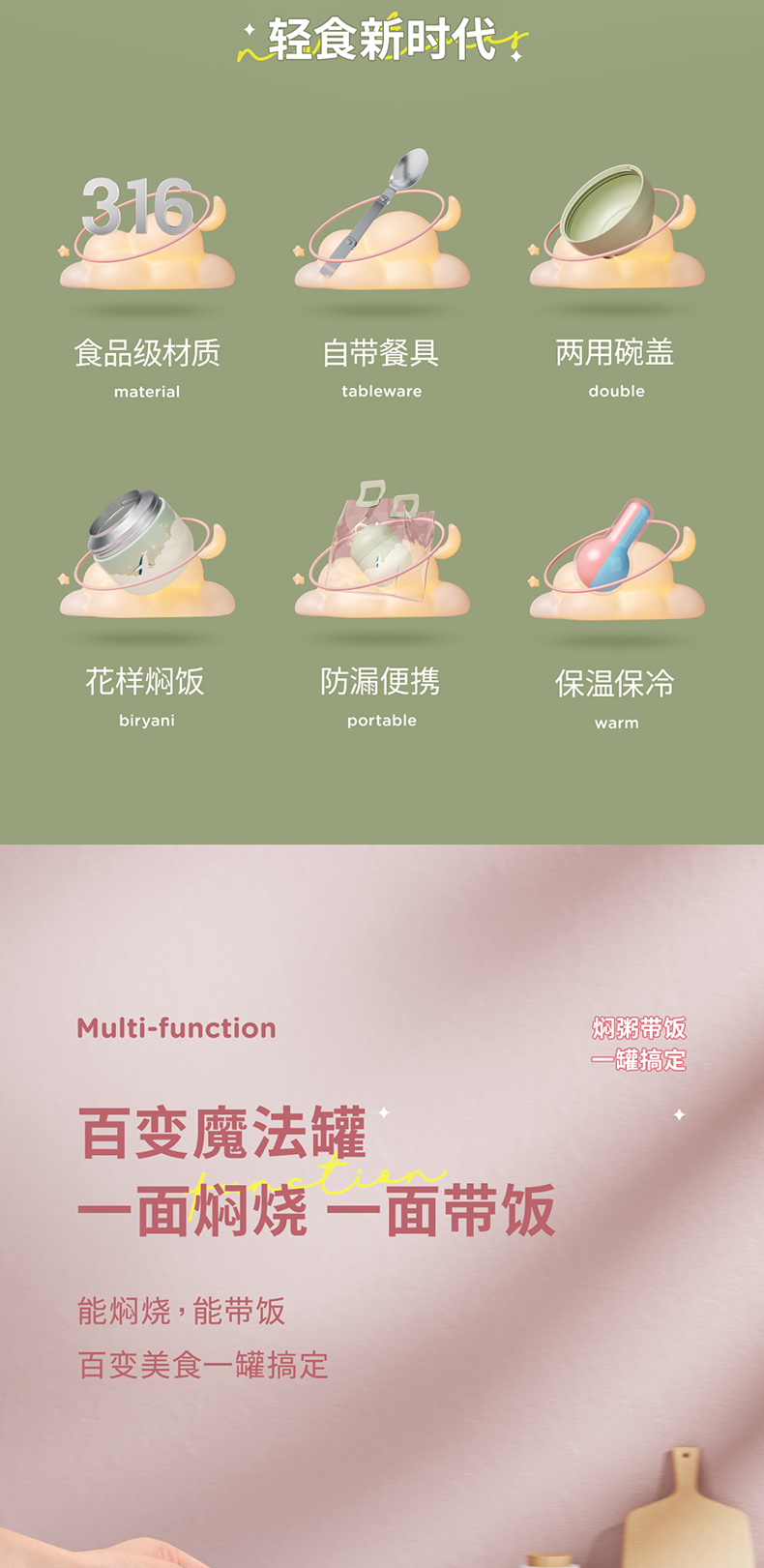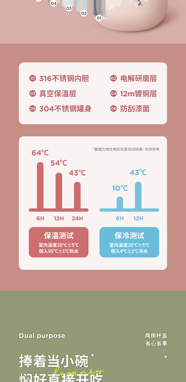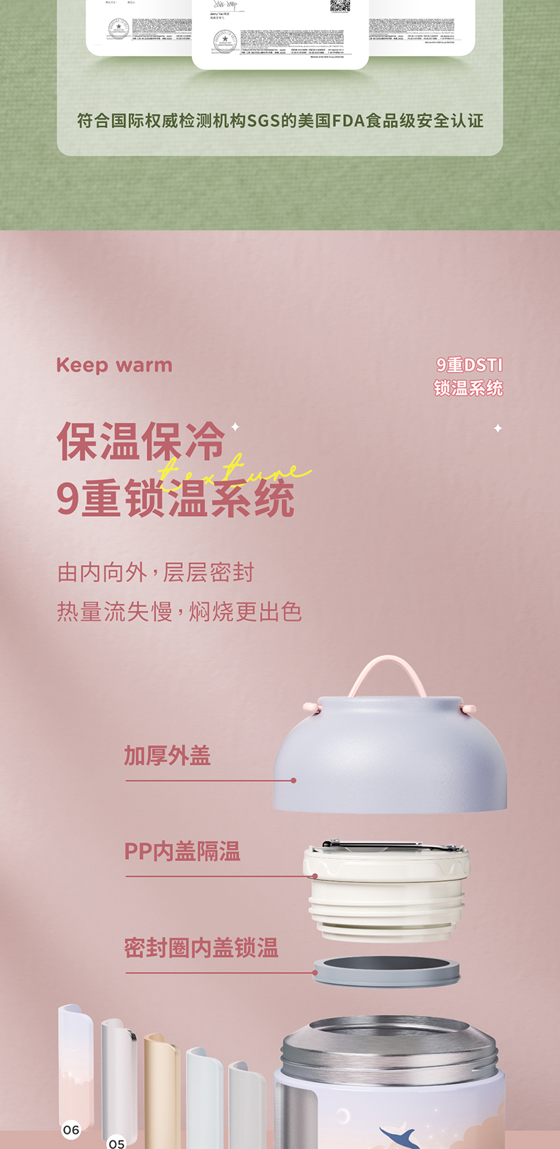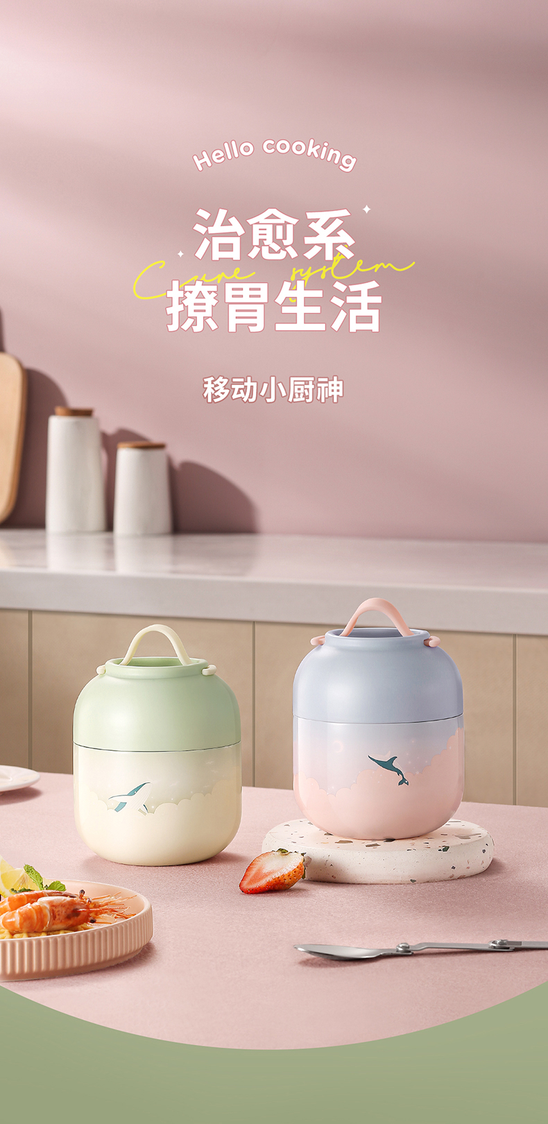 物生物(RELEA) JV032101-0700-BS00 316不锈钢 700ML HELLO焖烧罐 奶牛喵喵白(单位:个)