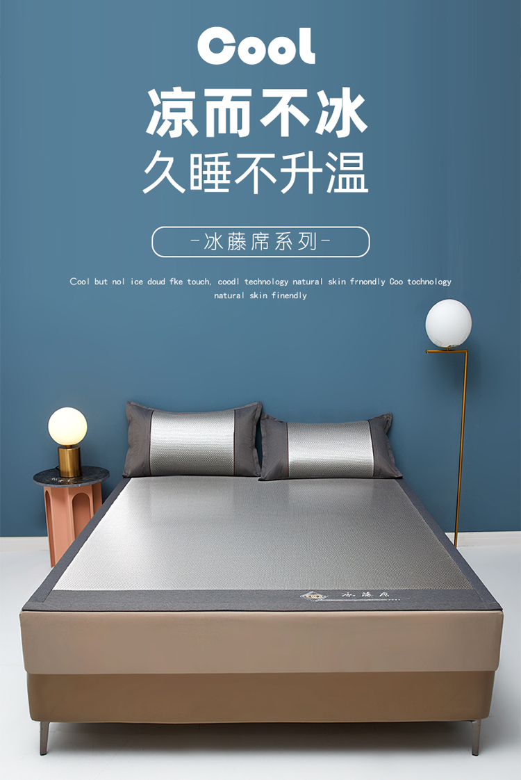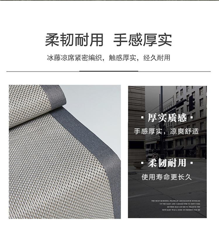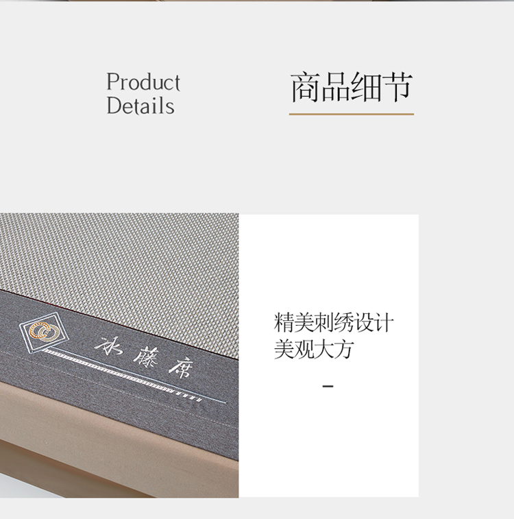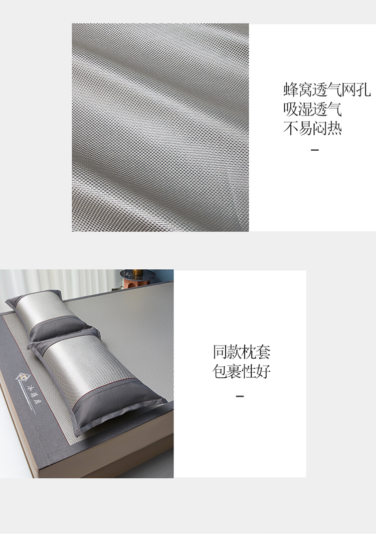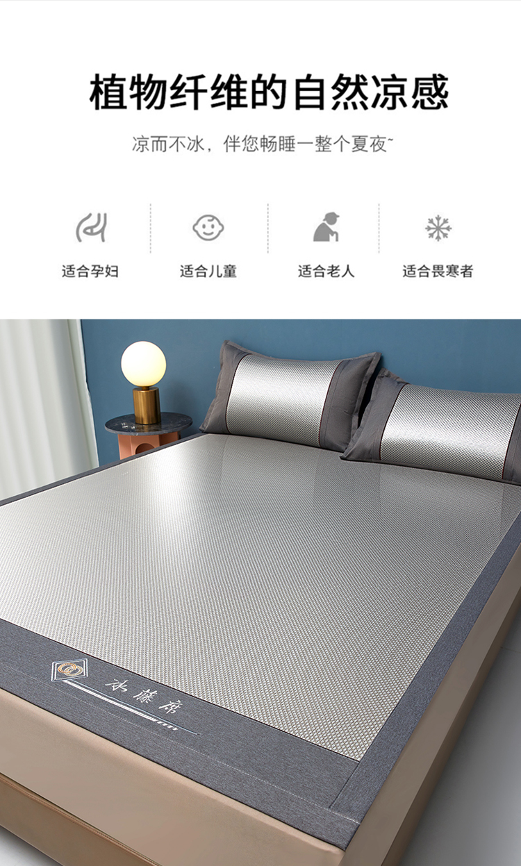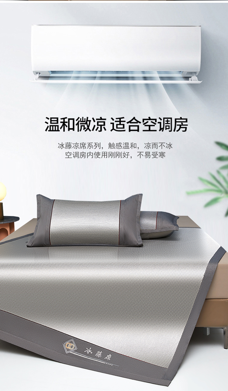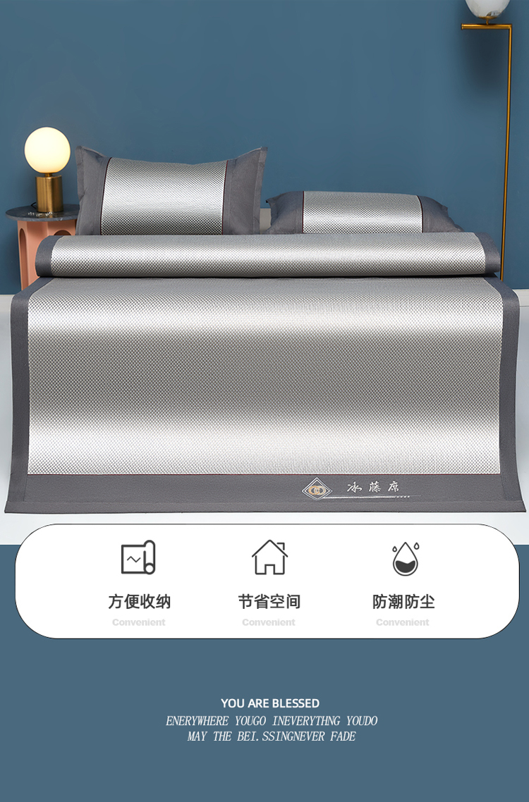雅鹿 YLX2401 180*200cm 刺绣冰藤席三件套 1.8米床 灰(单位:床)