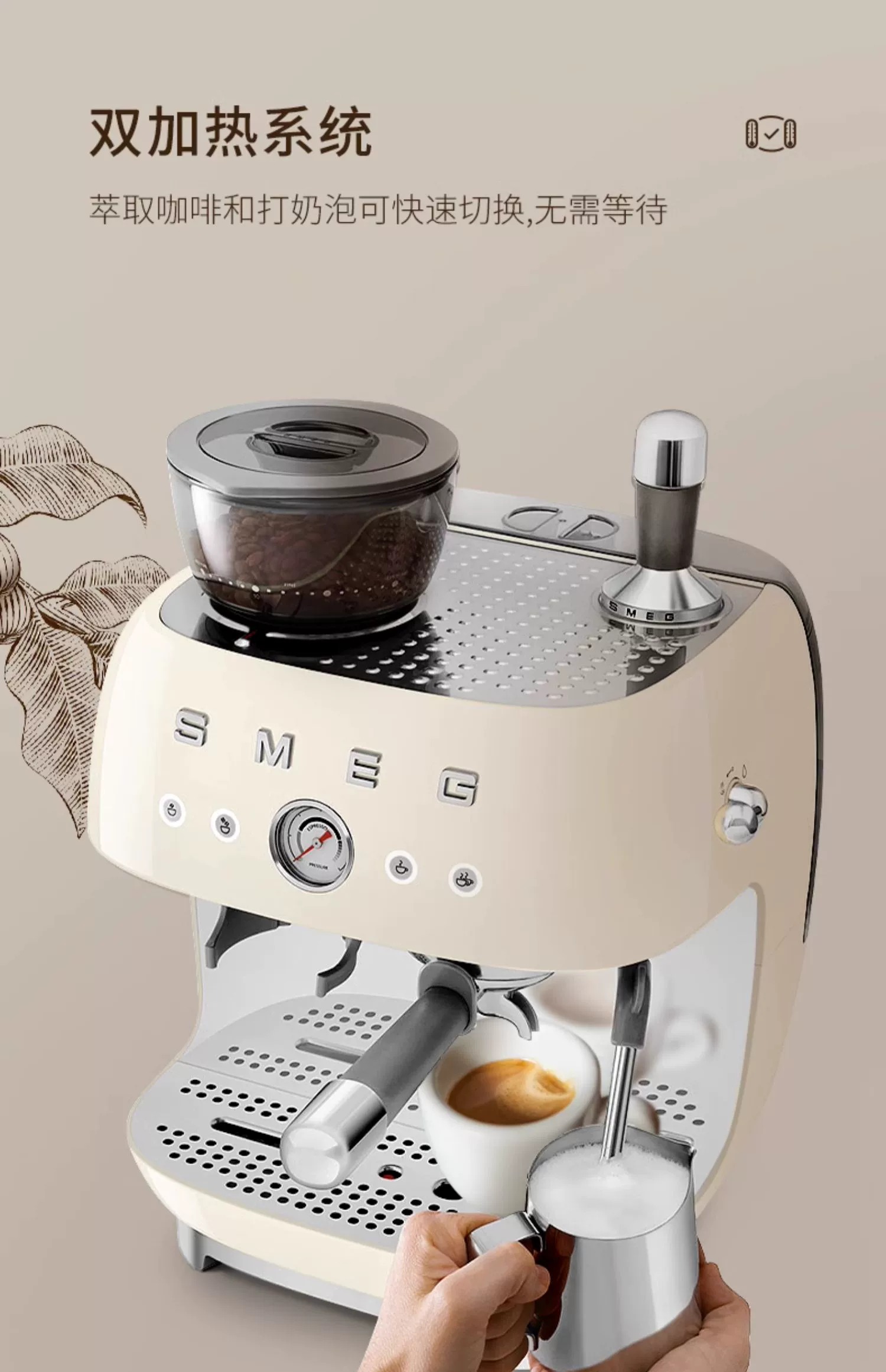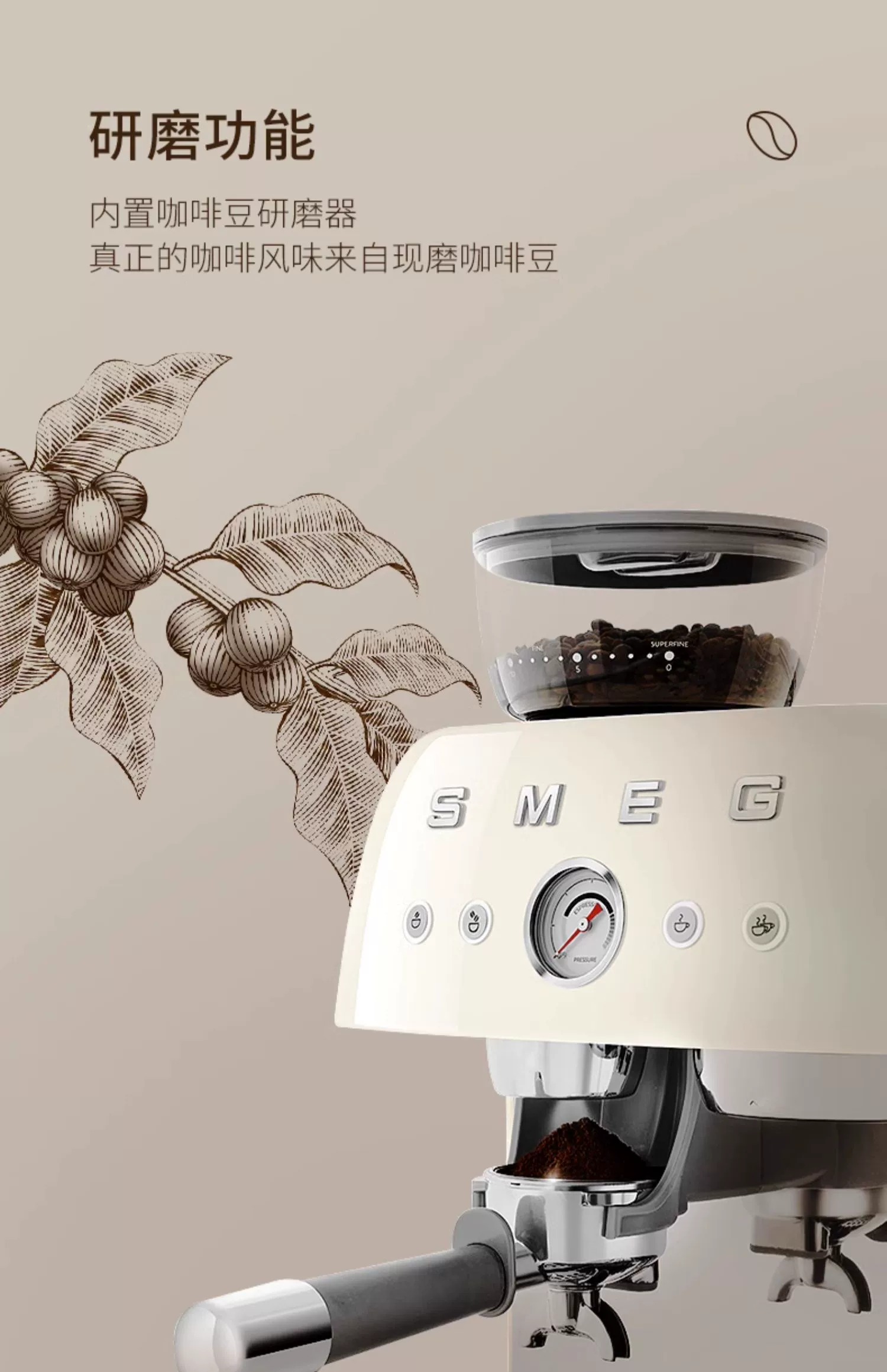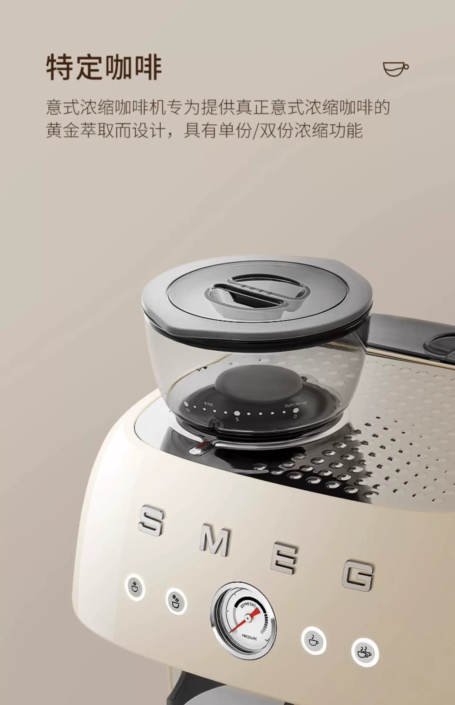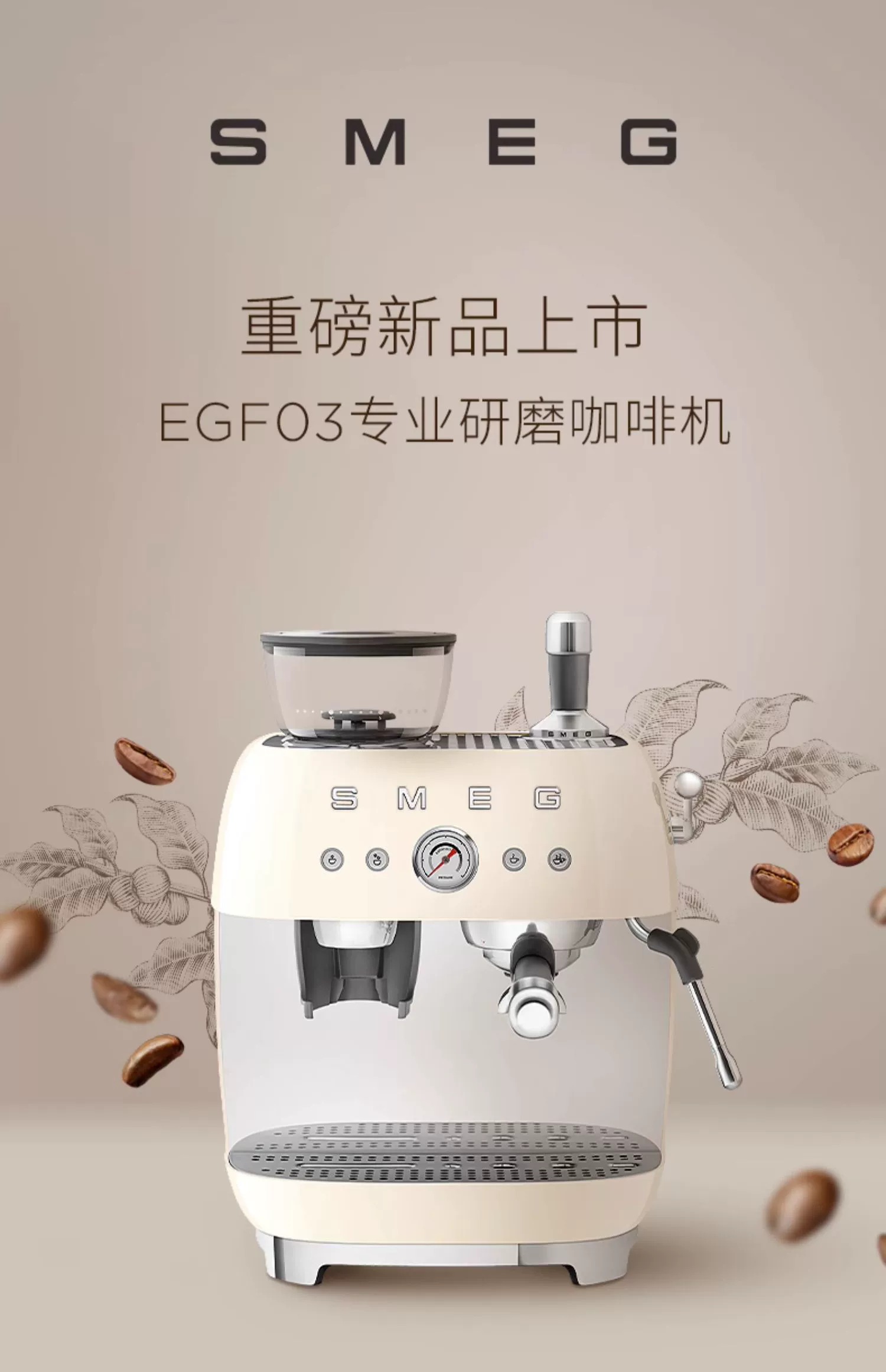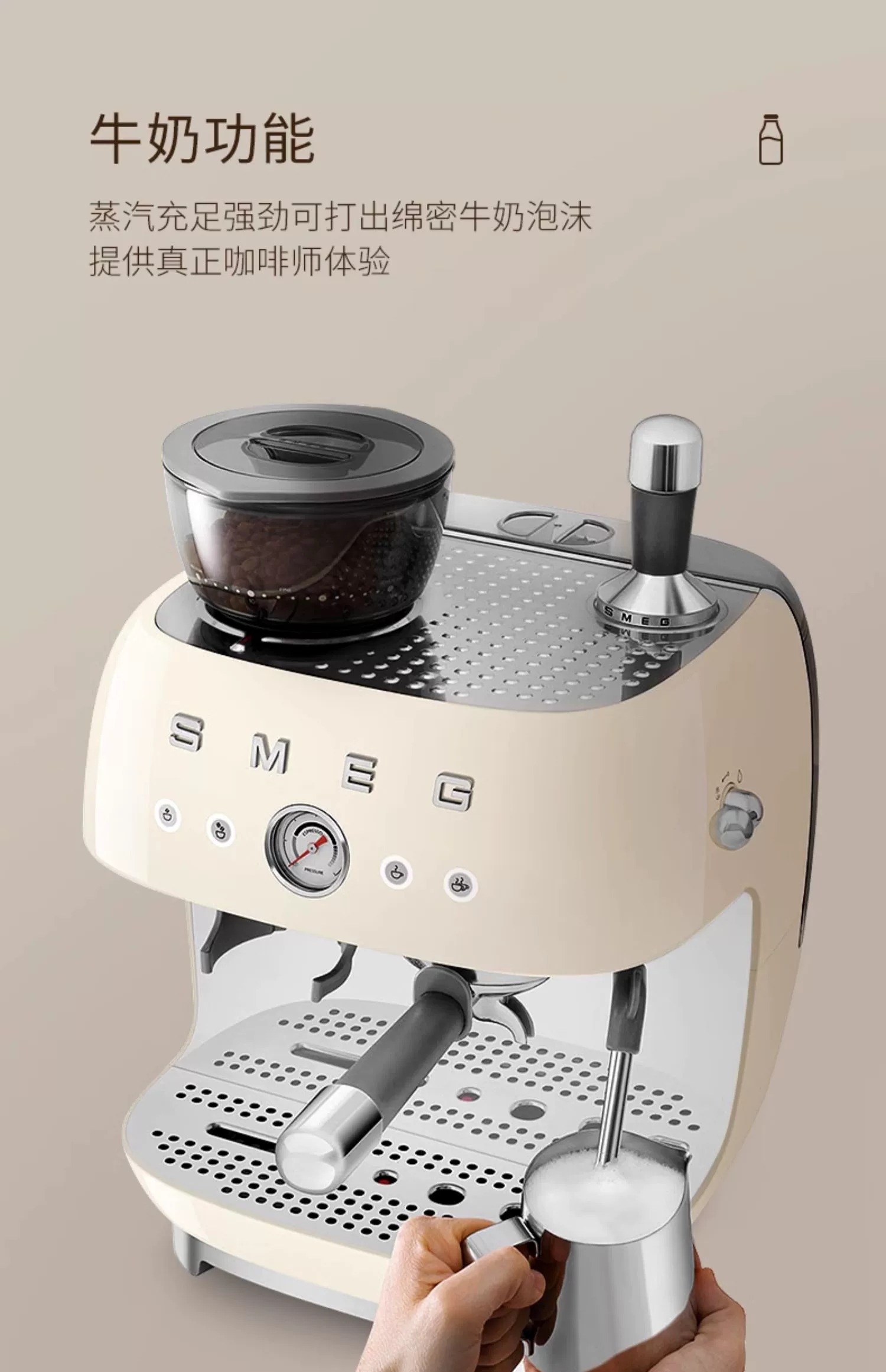 斯麦格(SMEG) EGF03 1.9L 磨豆机奶泡机意式咖啡 奶白色(单位:台)