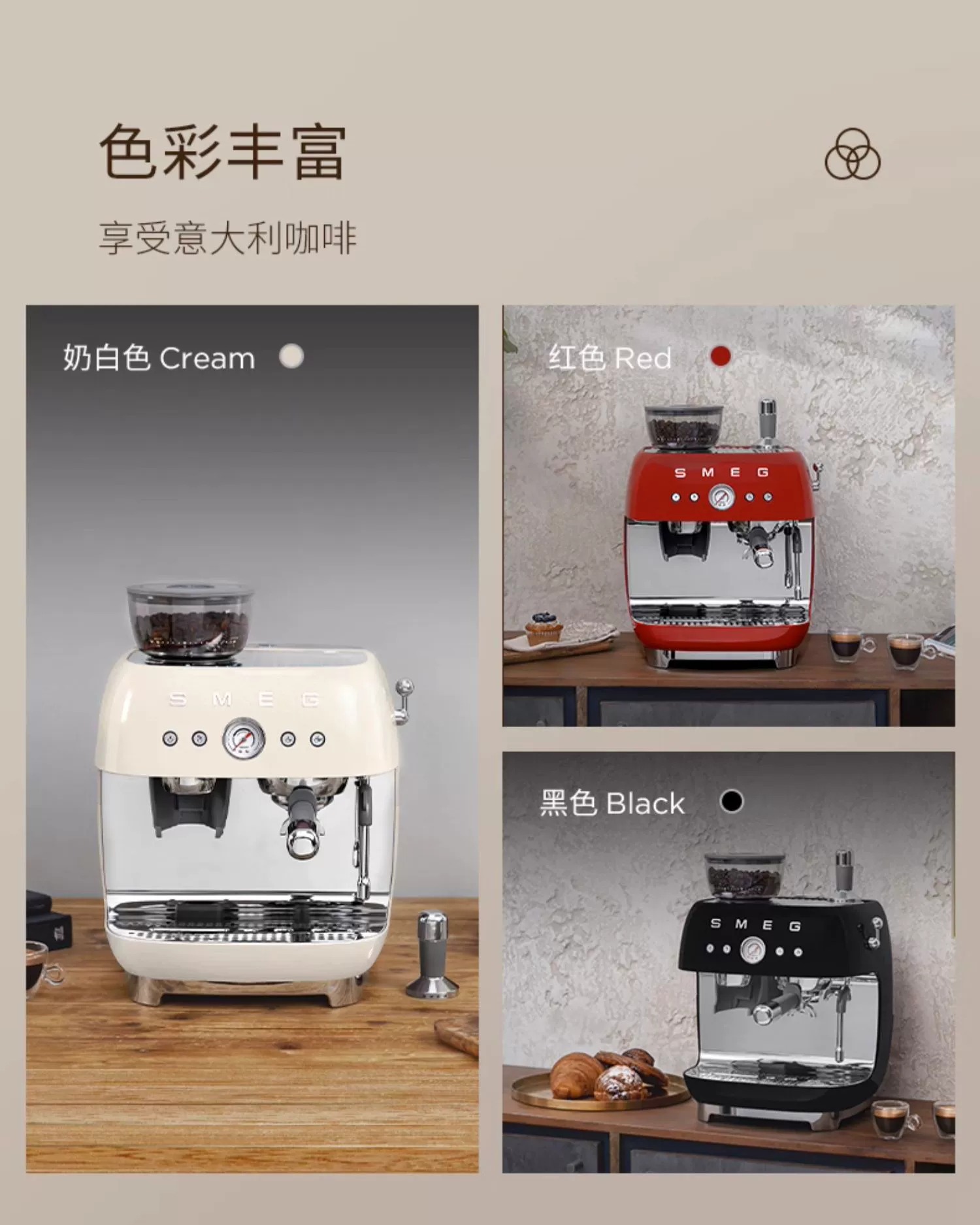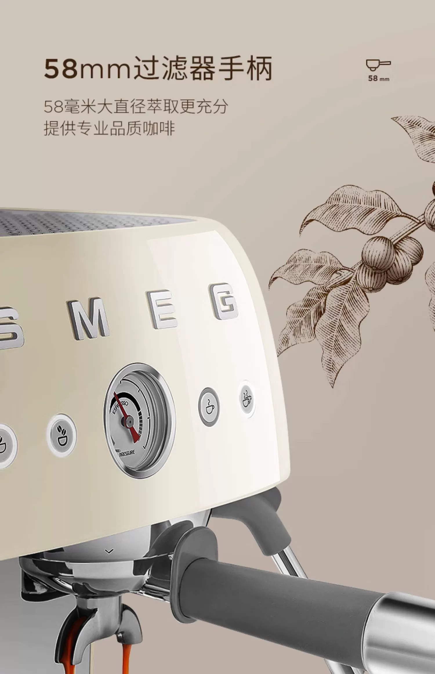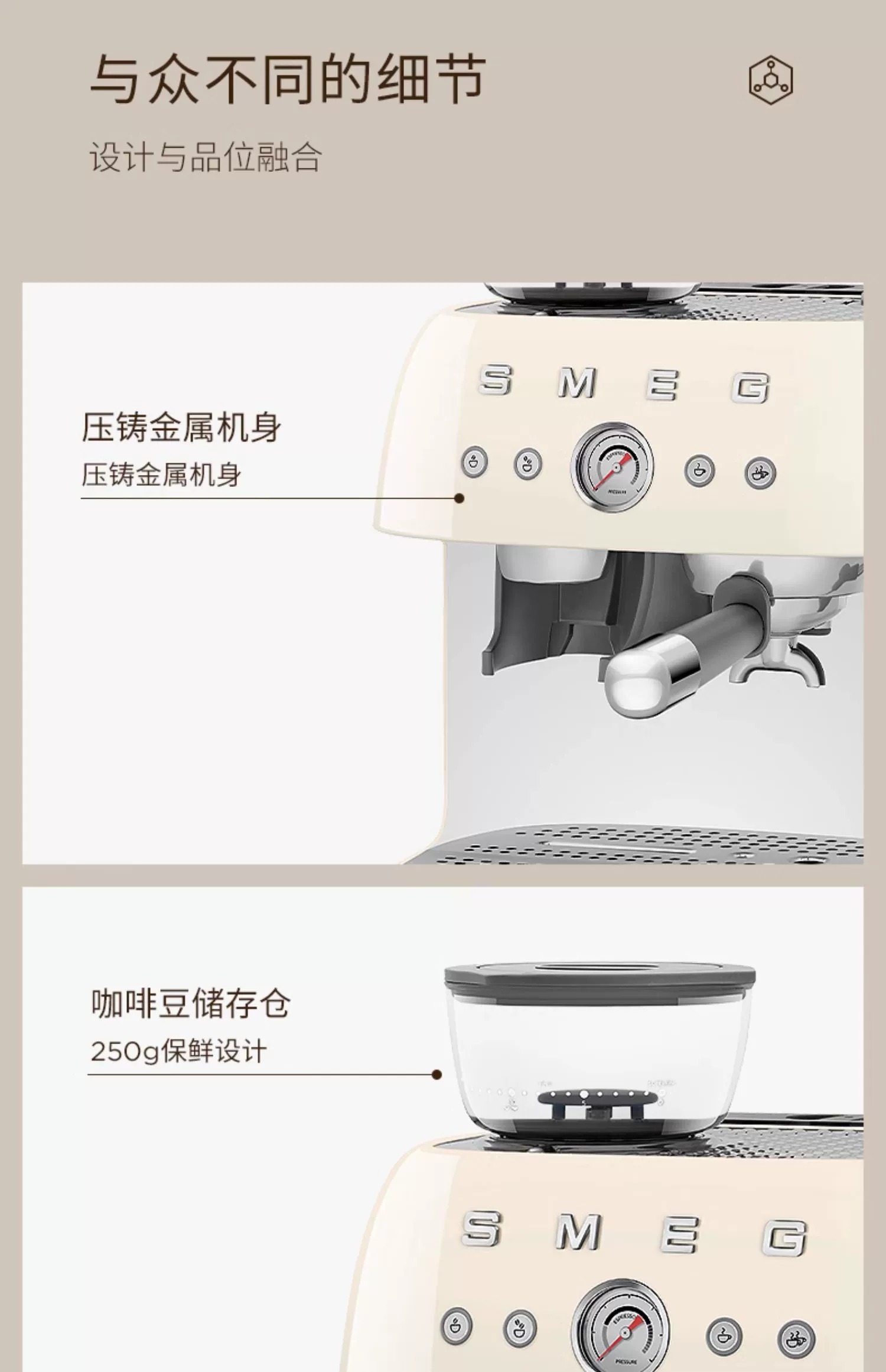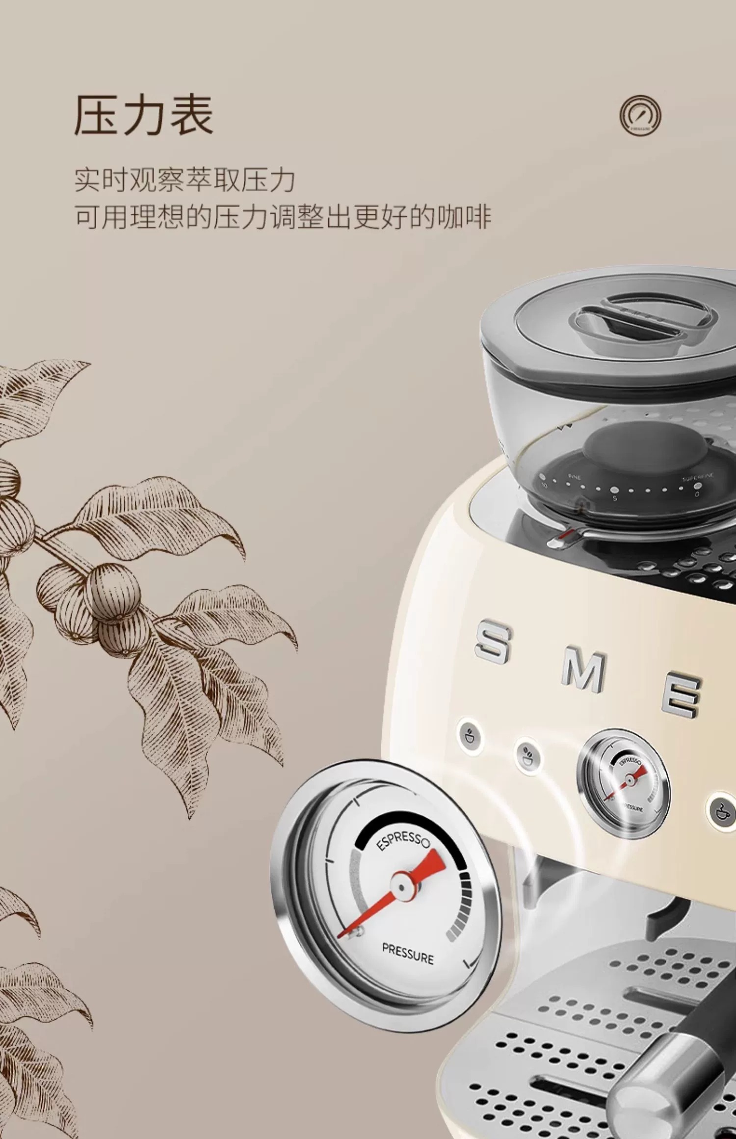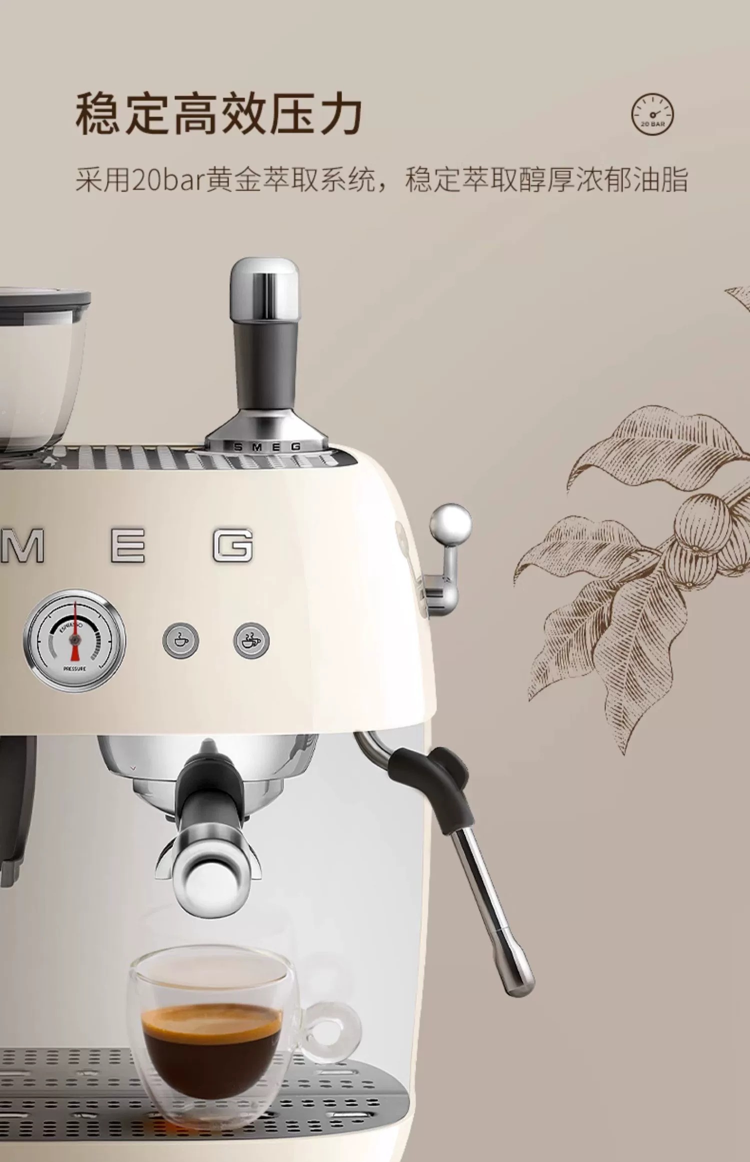 斯麦格(SMEG) EGF03 1.9L 磨豆机奶泡机意式咖啡 奶白色(单位:台)