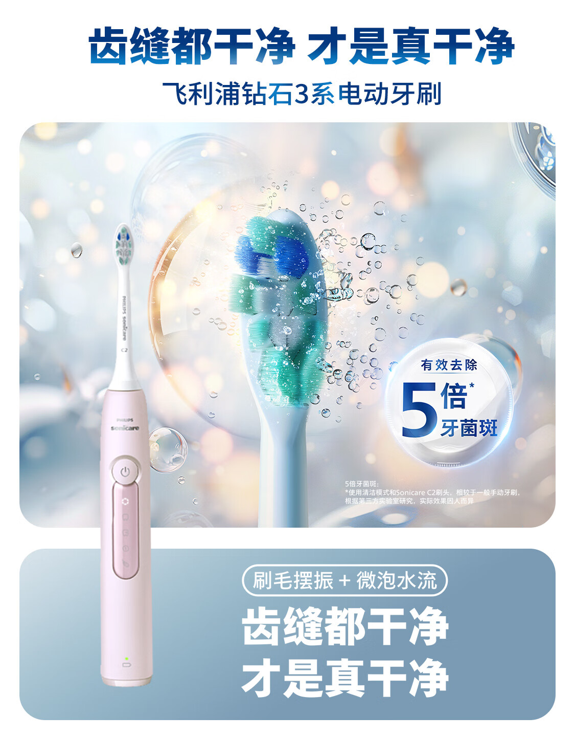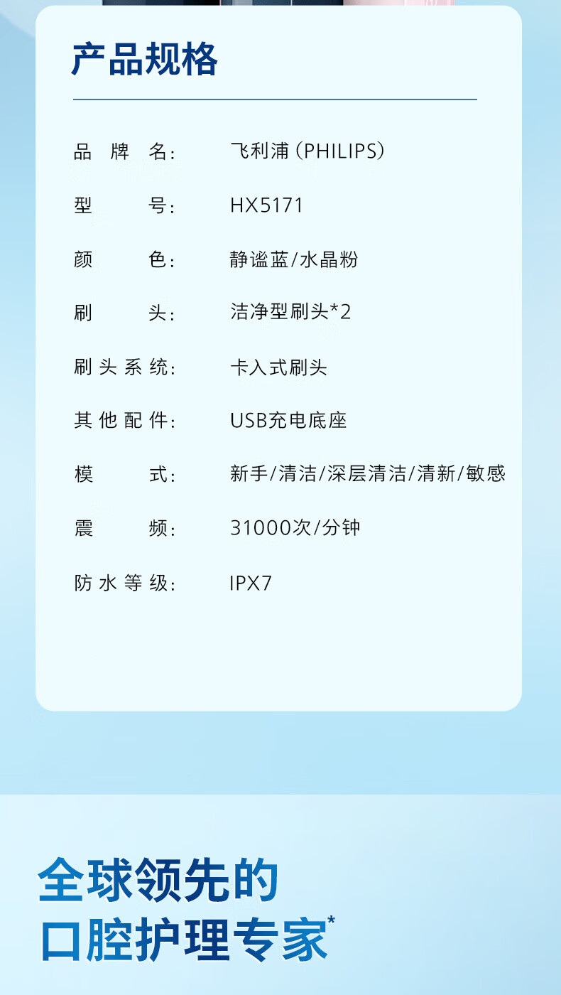 飞利浦(PHILIPS) HX5171/04 产品尺寸 长110mm;宽10mm;高20mm 电动牙刷HX5171 粉色(单位:支)