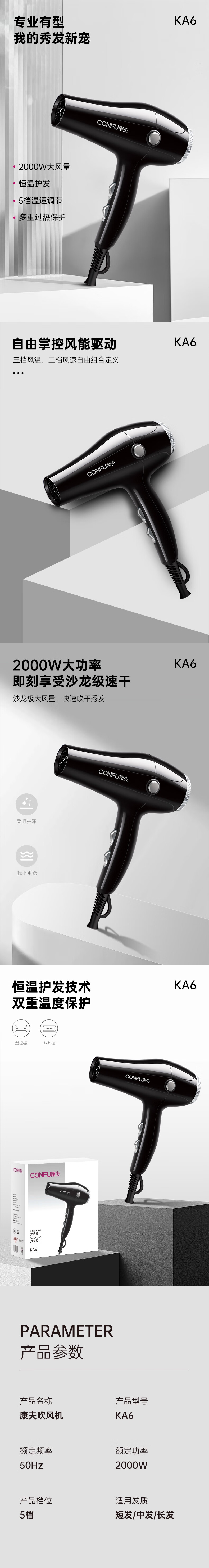 康夫(KANGFU) KA6 2000W 电吹风机 黑色(单位:台)