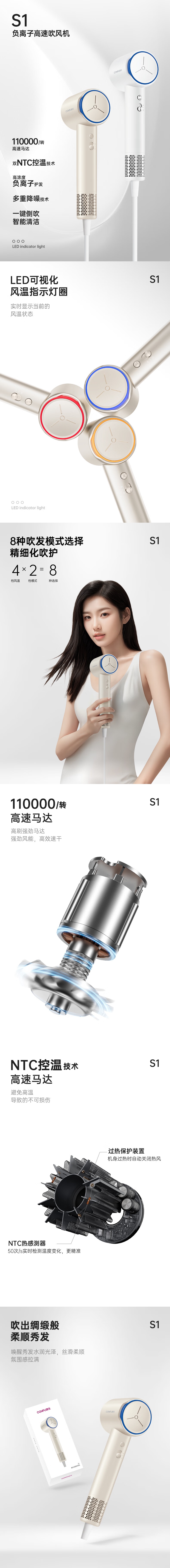 康夫(KANGFU) KF-S1 1600W 电吹风机 奶茶色(单位:台)