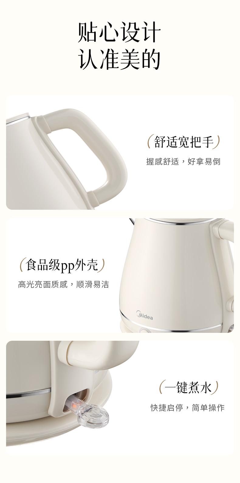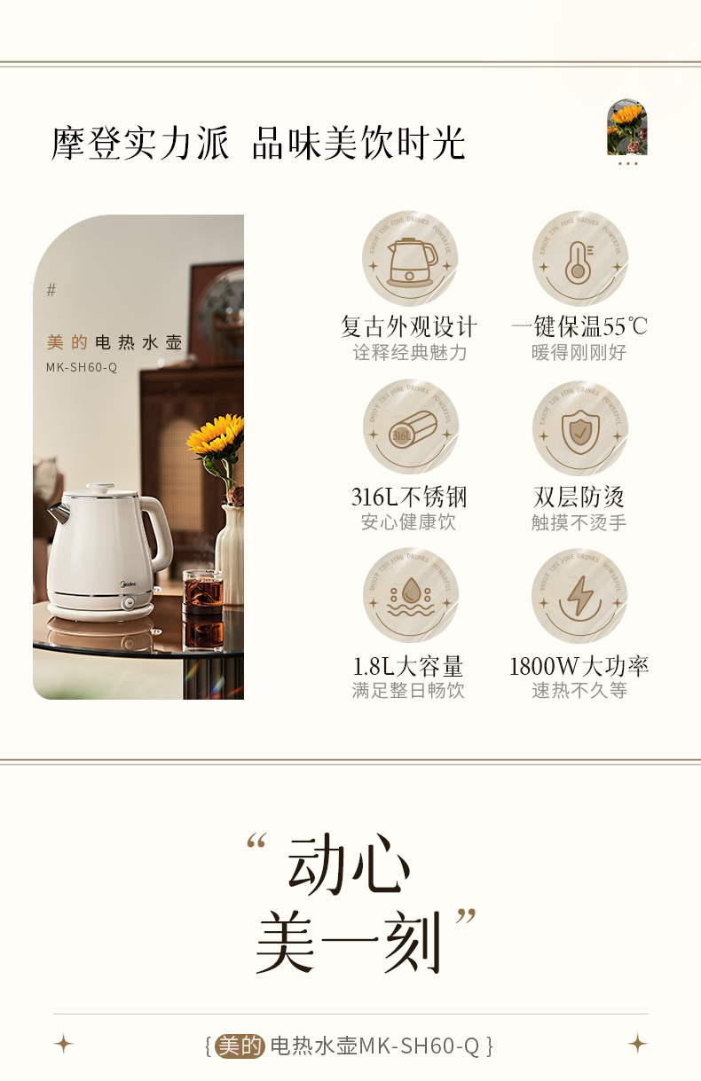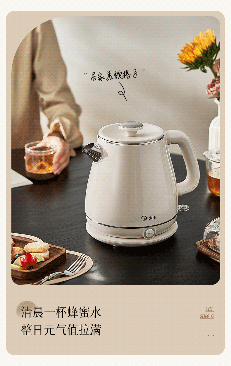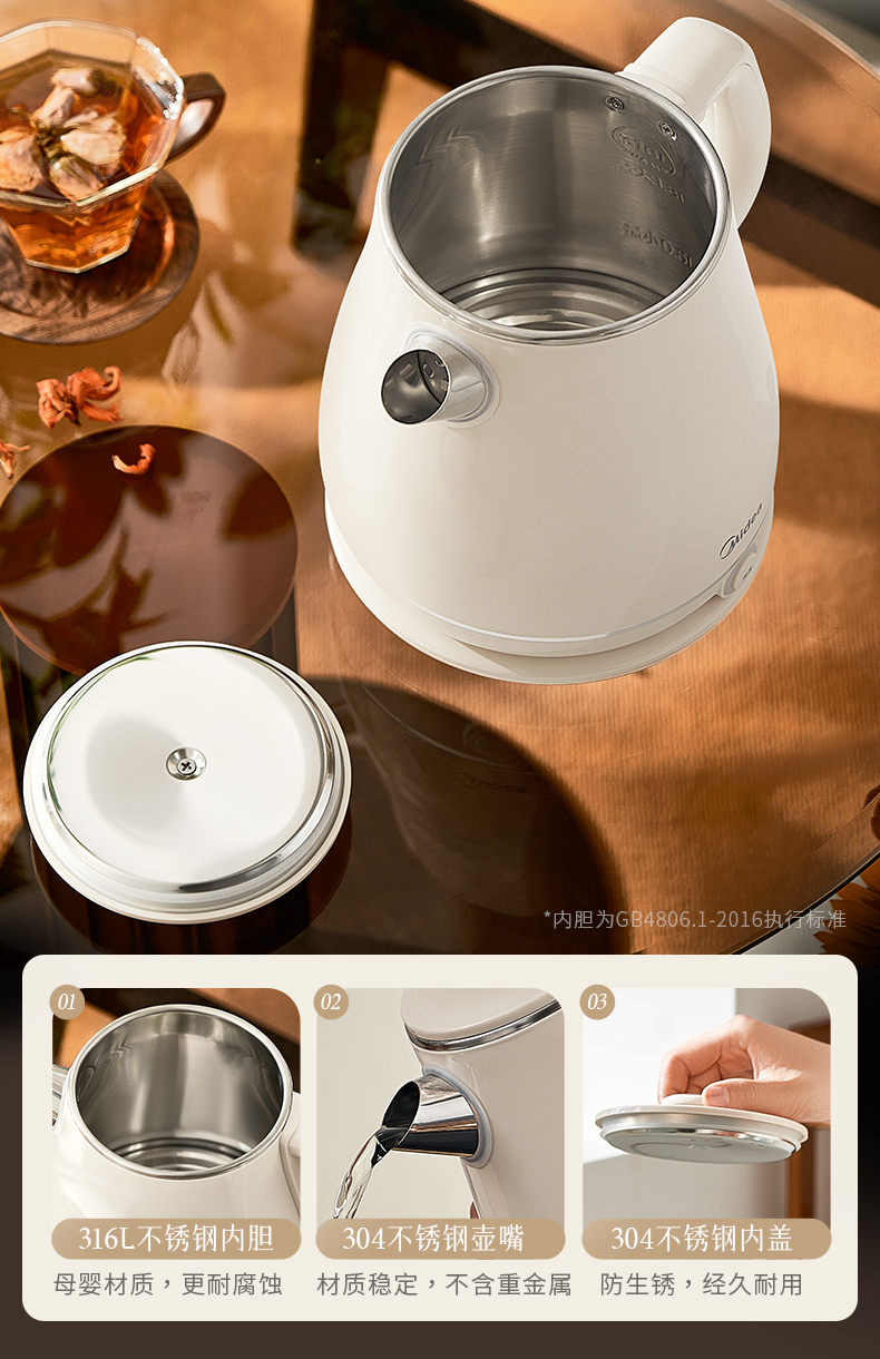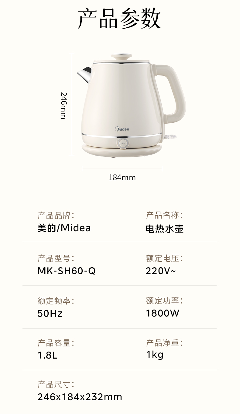 美的(Midea) SH60-Q 1.8L 316L不锈钢电水壶 白色(单位:台)