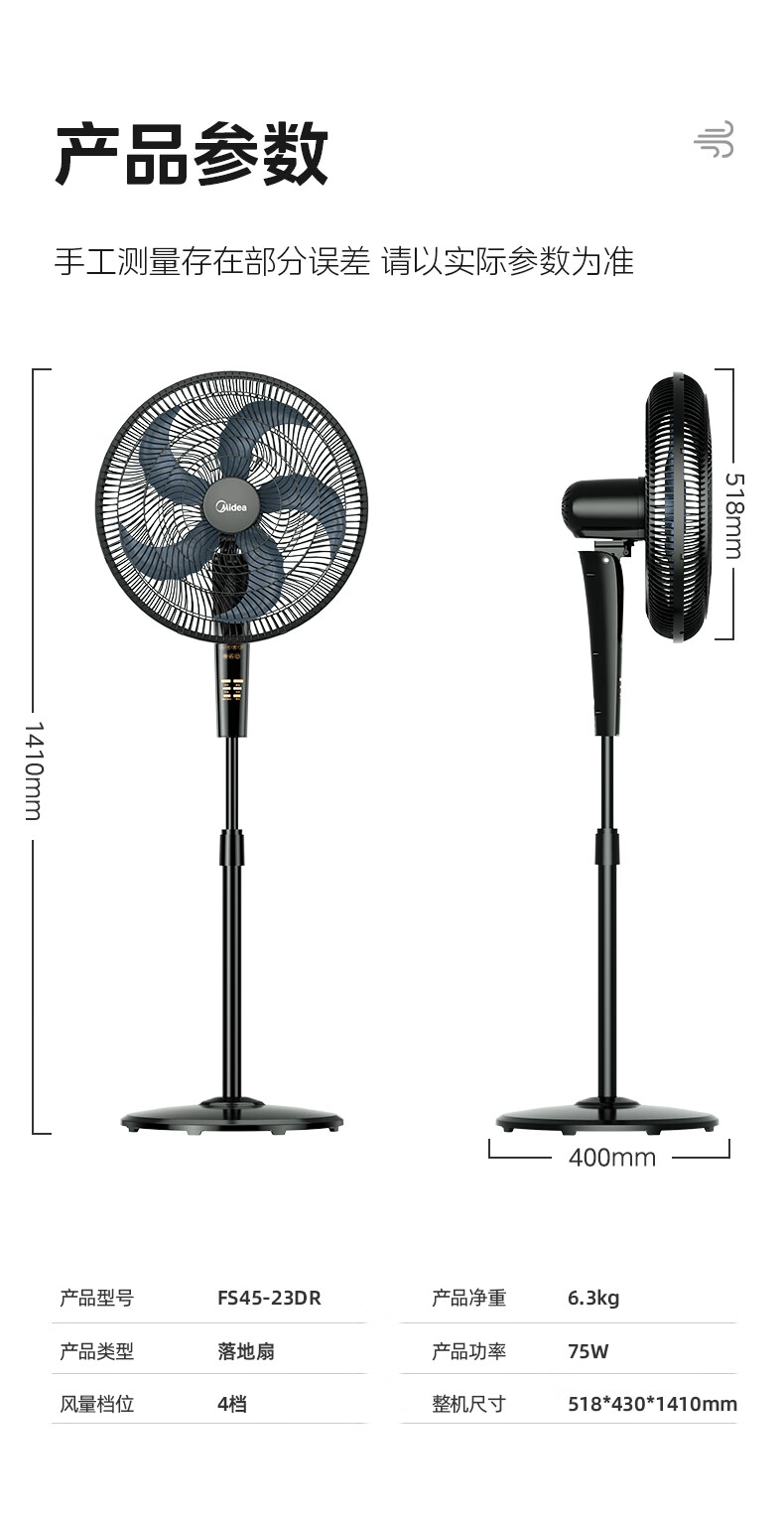 美的(Midea) FS45-23DR 75W 遥控风扇 黑色(单位:台)