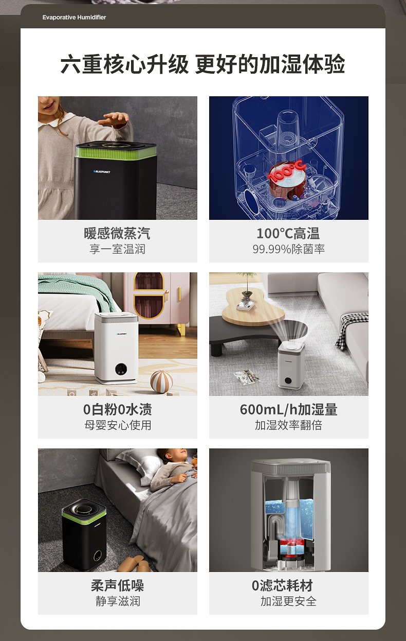 蓝宝(BLAUPUNKT) BP-S10 6L 蒸发式加湿器 皓月白(单位:台)