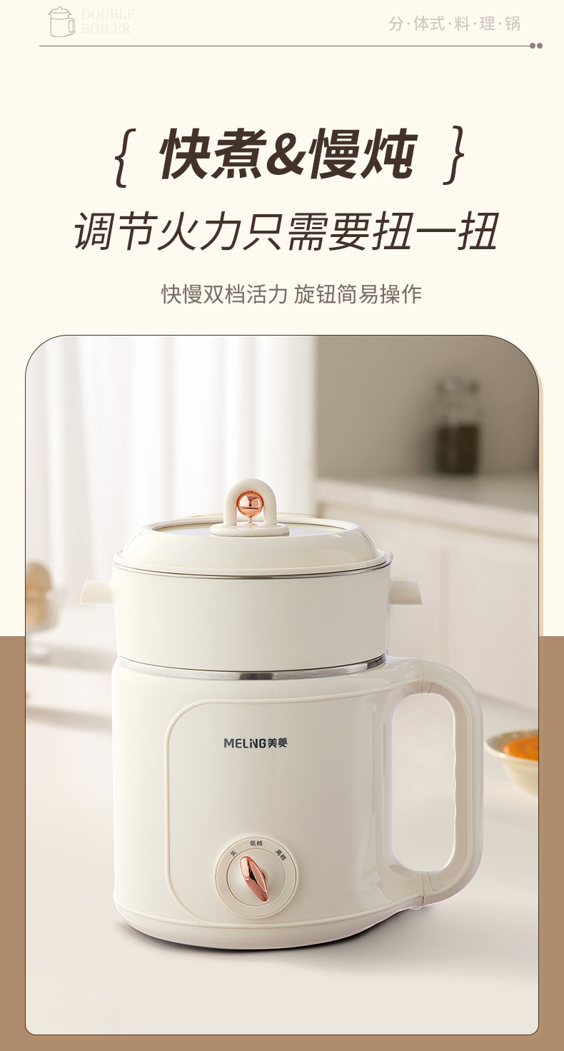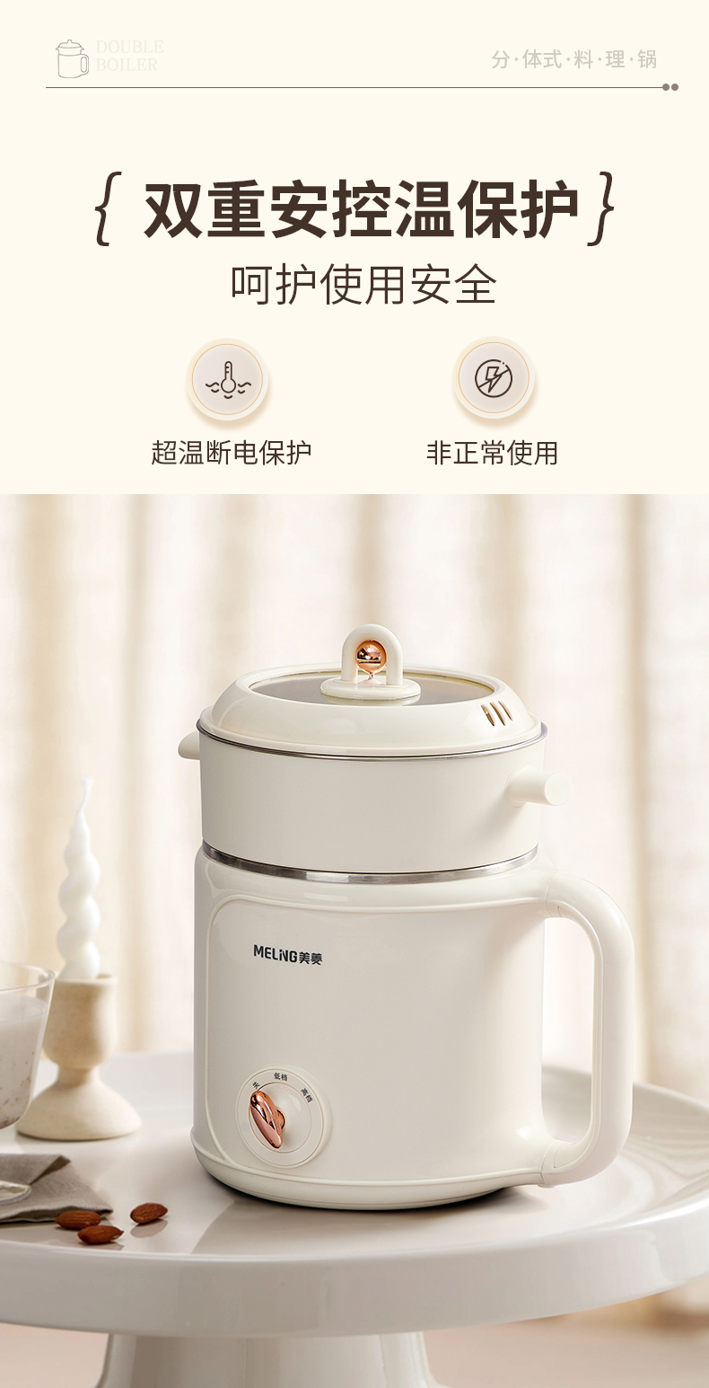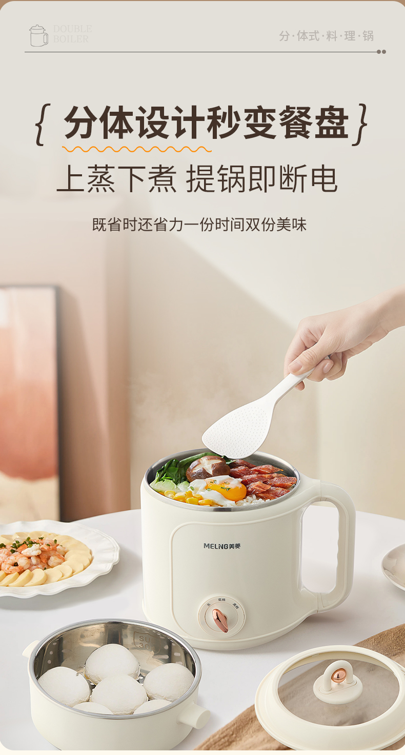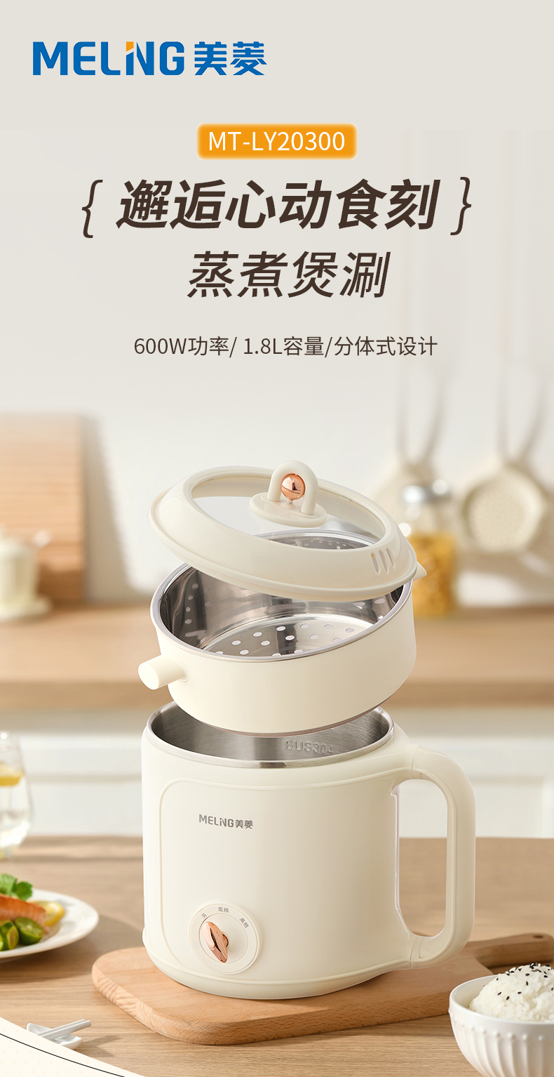 美菱(MeiLing) MT-LY20300 1.8L 多功能双层电煮锅 米白色(单位:台)