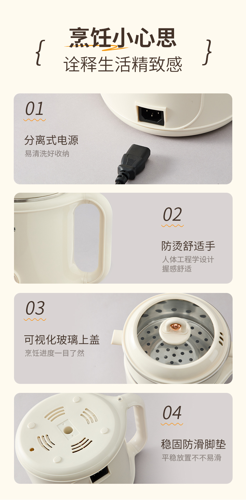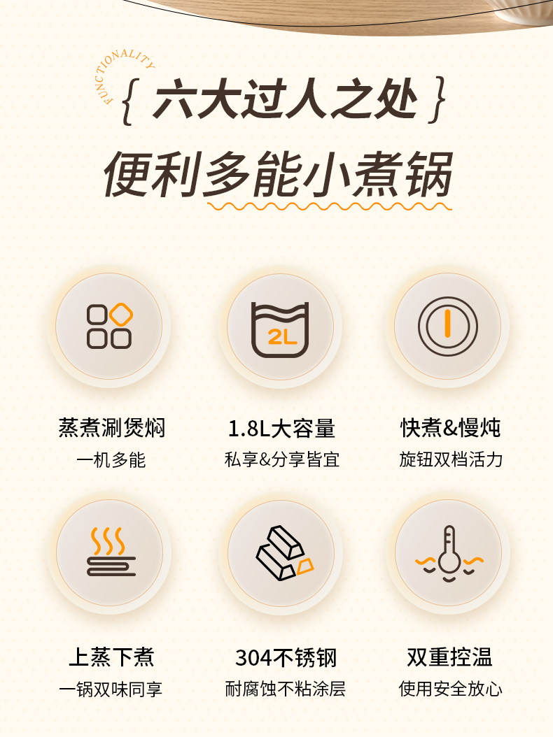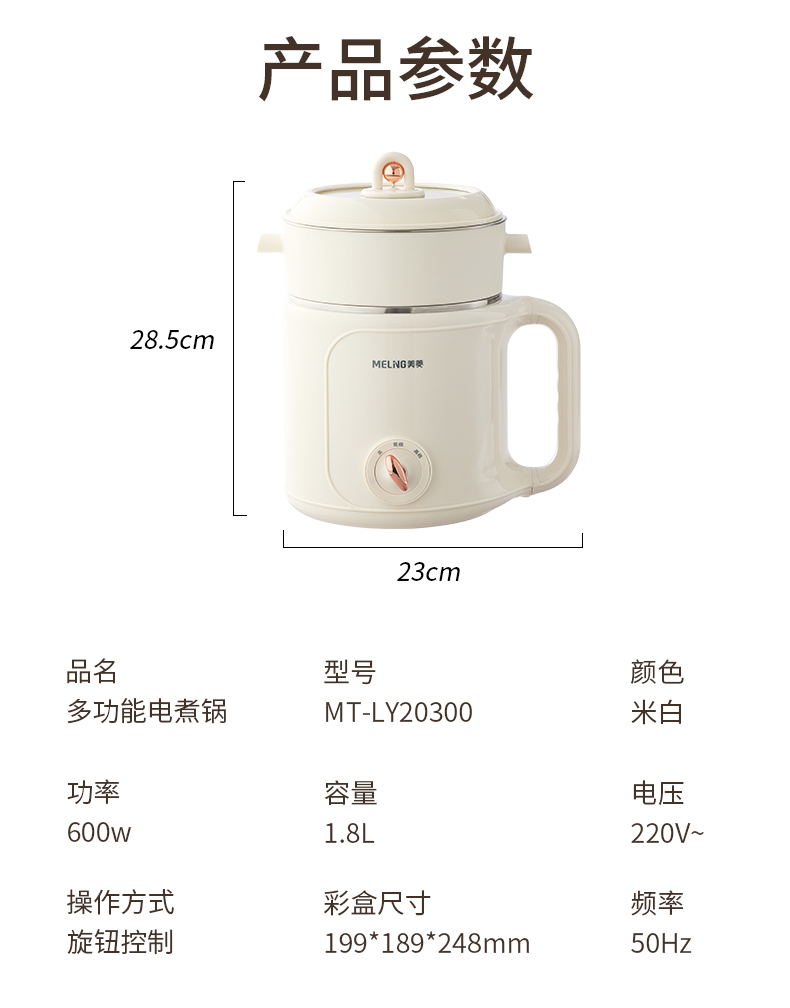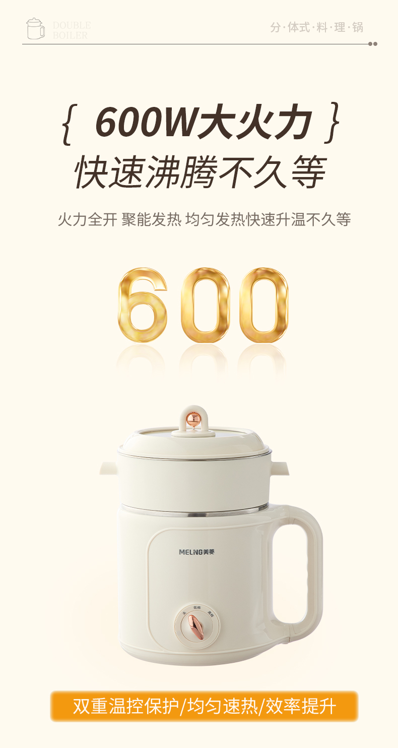 美菱(MeiLing) MT-LY20300 1.8L 多功能双层电煮锅 米白色(单位:台)