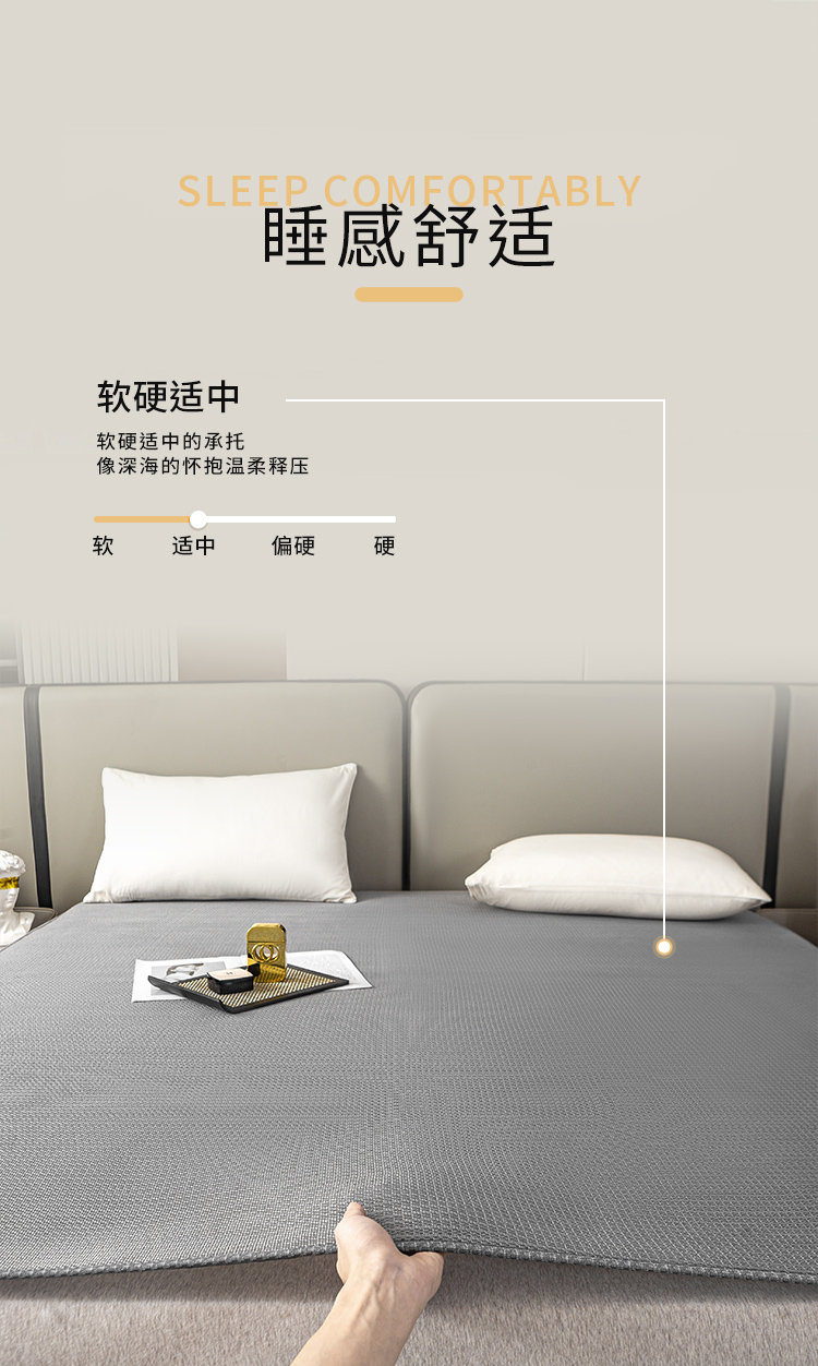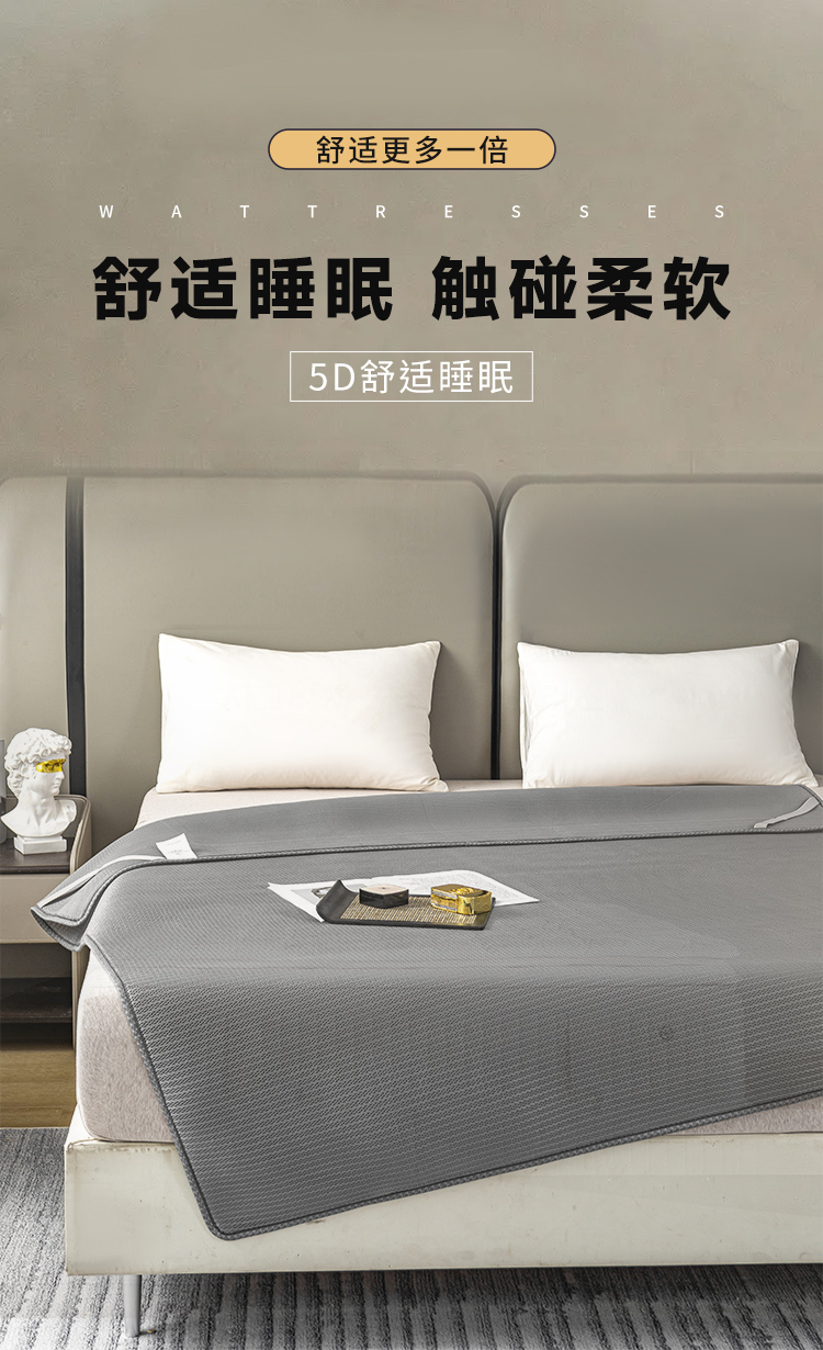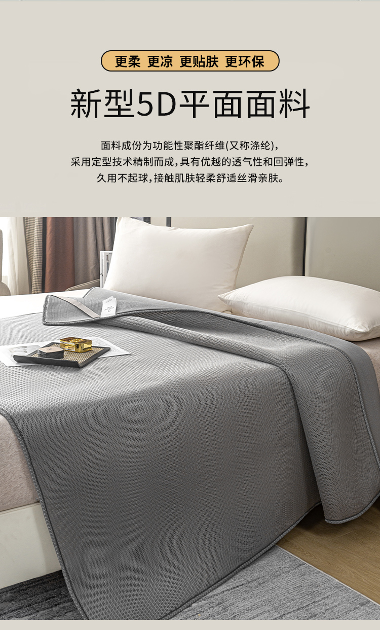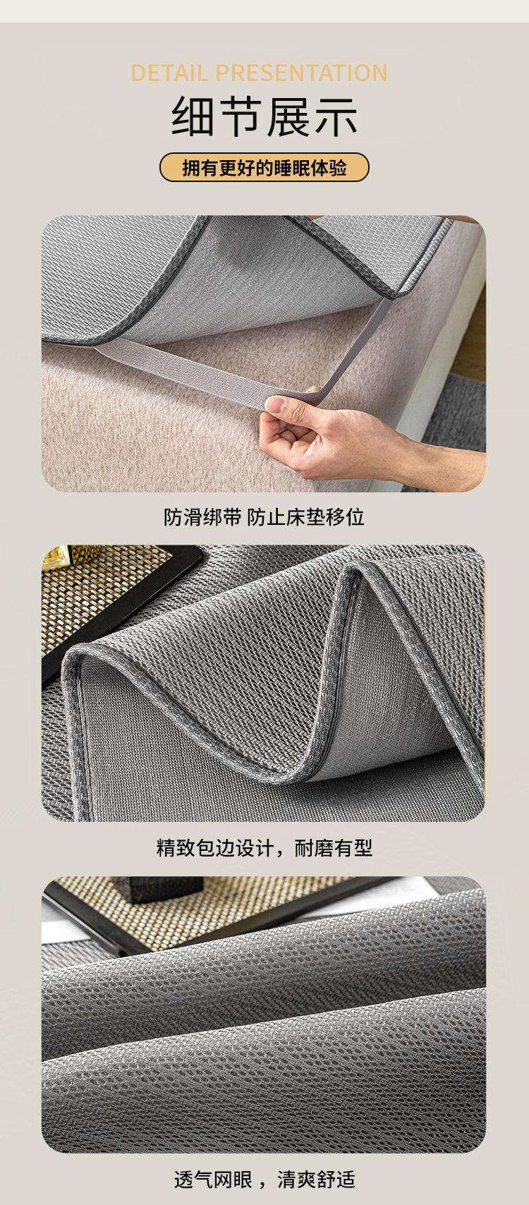 晚安家纺 5D生态科技软垫-沐雅 120*200*0.8cm 凉席通风透气抑菌防螨 浅灰色(单位:床)