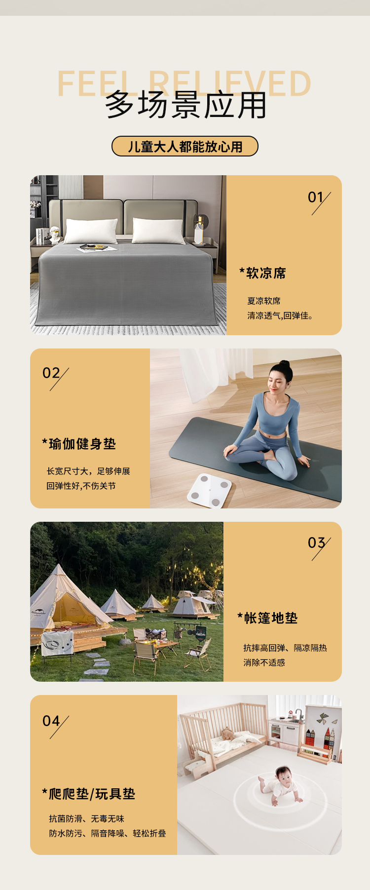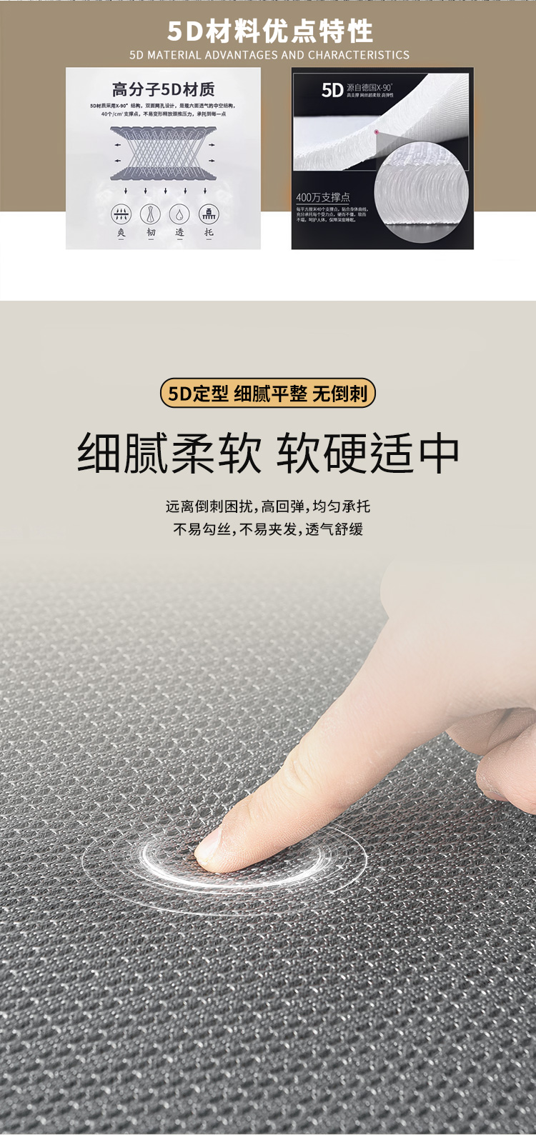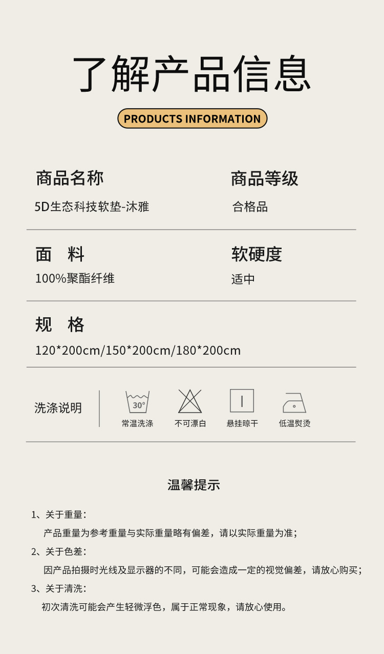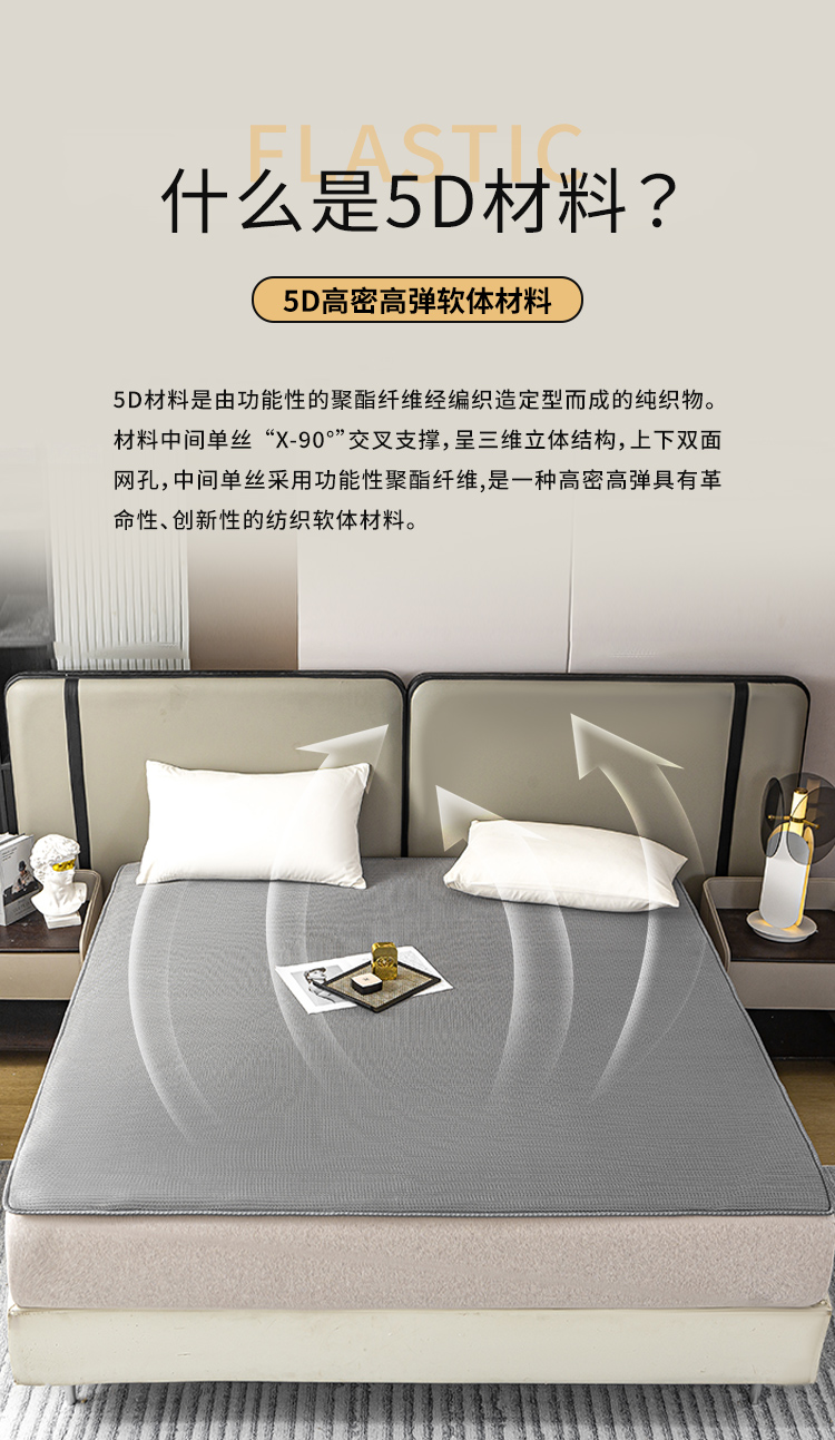 晚安家纺 5D生态科技软垫-沐雅 120*200*0.8cm 凉席通风透气抑菌防螨 浅灰色(单位:床)