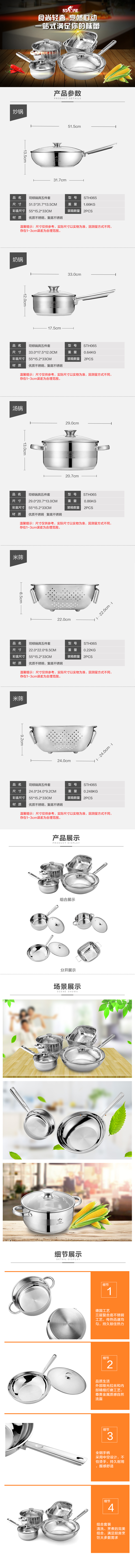 司顿 锅具五件套 炒锅+奶锅+汤锅+方形双耳淘洗吧多件套 STH065 (单位:套) 混色