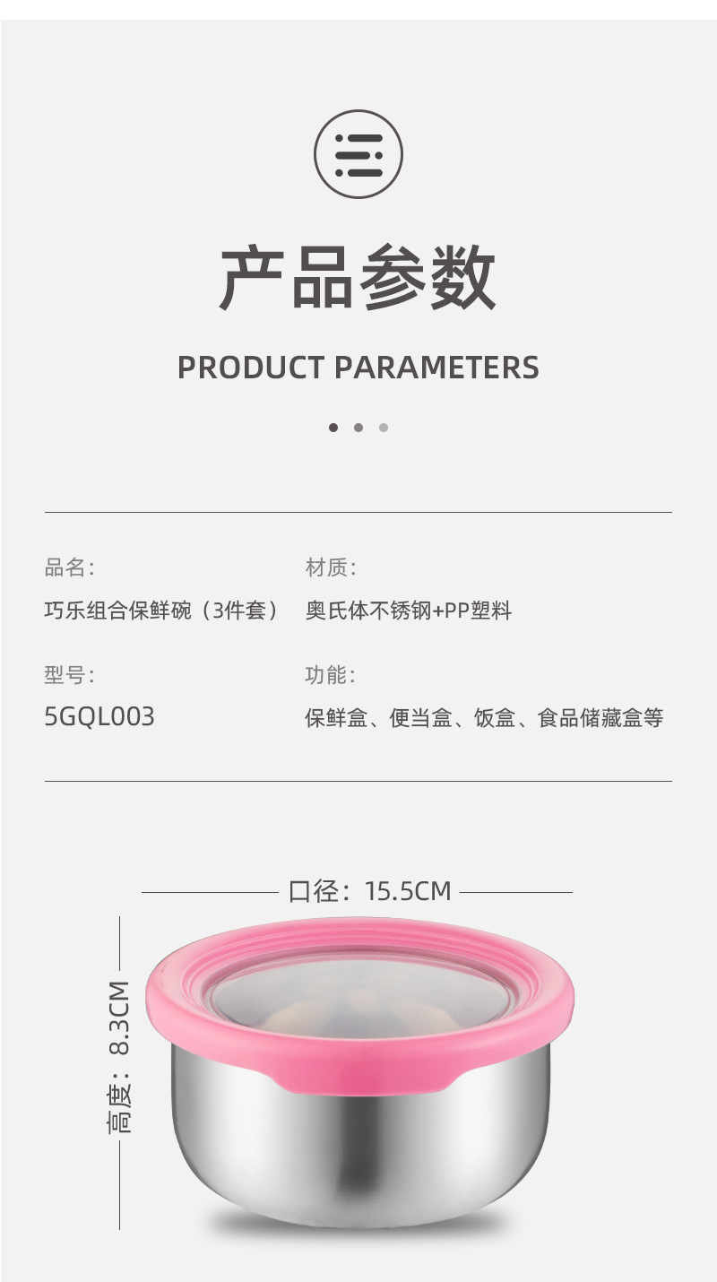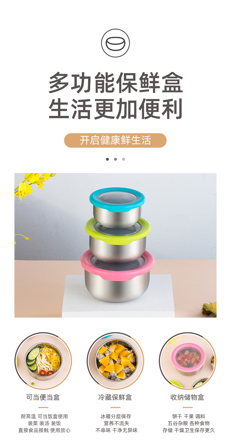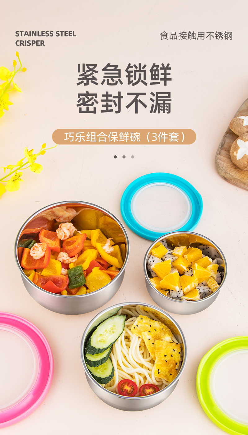 NORTON 巧乐组合保鲜碗(3件套)5GQL003(单位:套) 不锈钢色