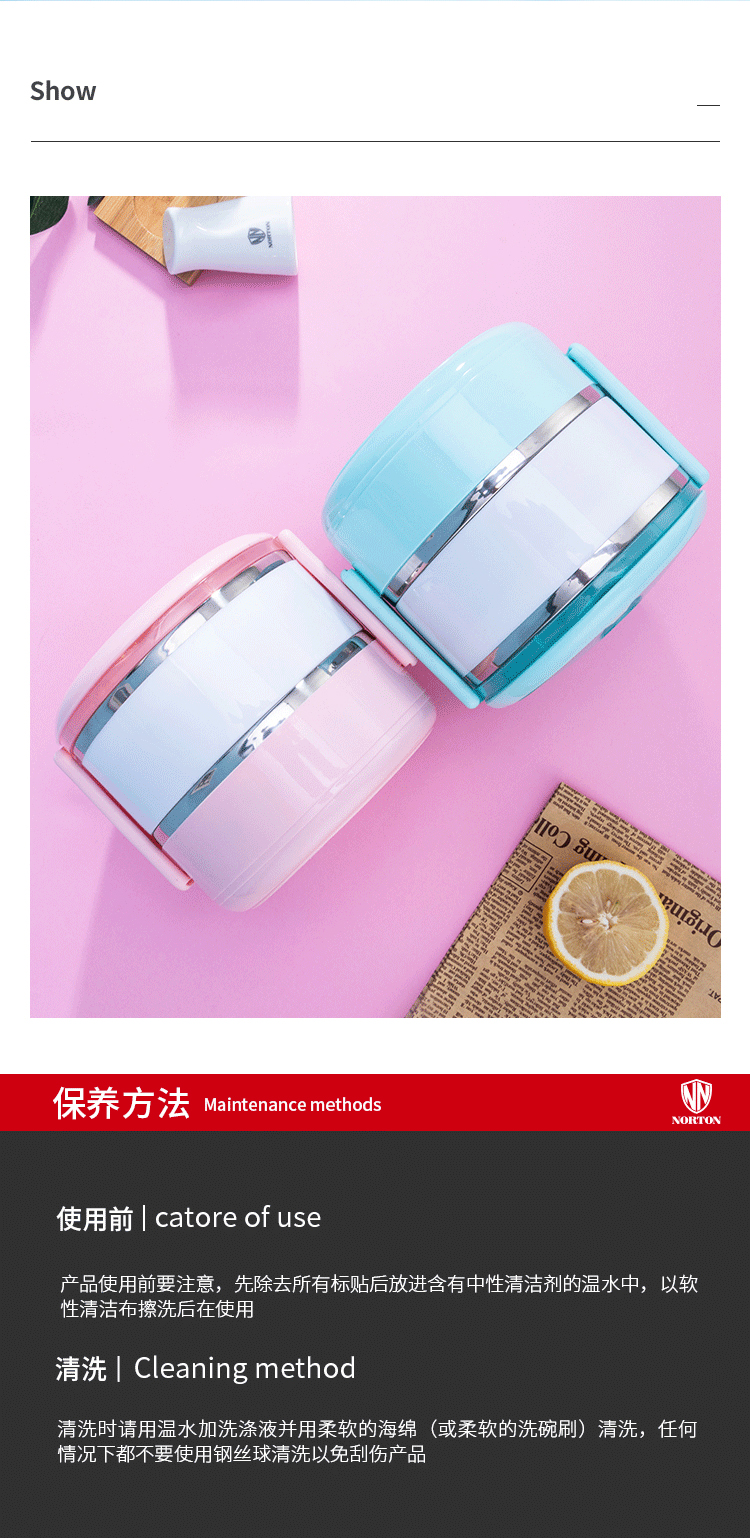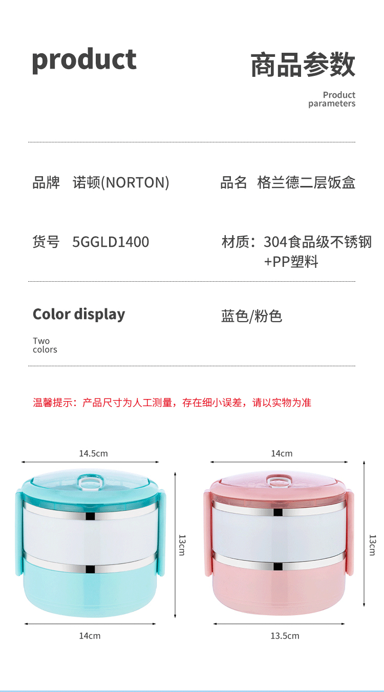 NORTON 格兰德二层饭盒5GGLD1400(单位:套) 粉红色