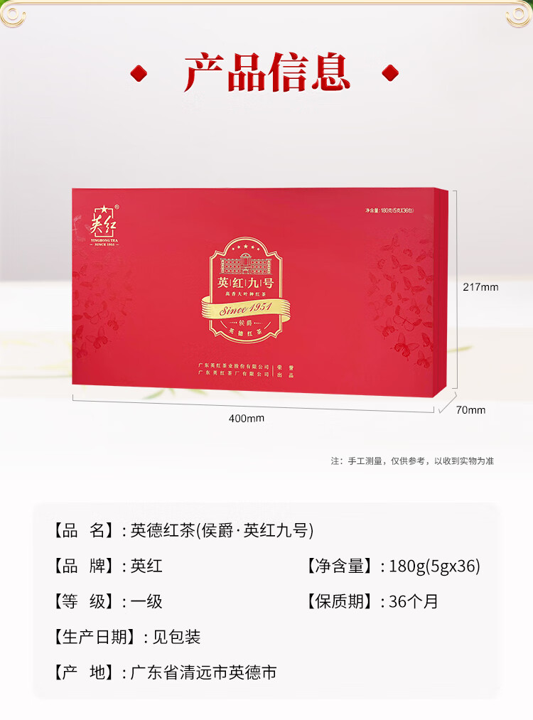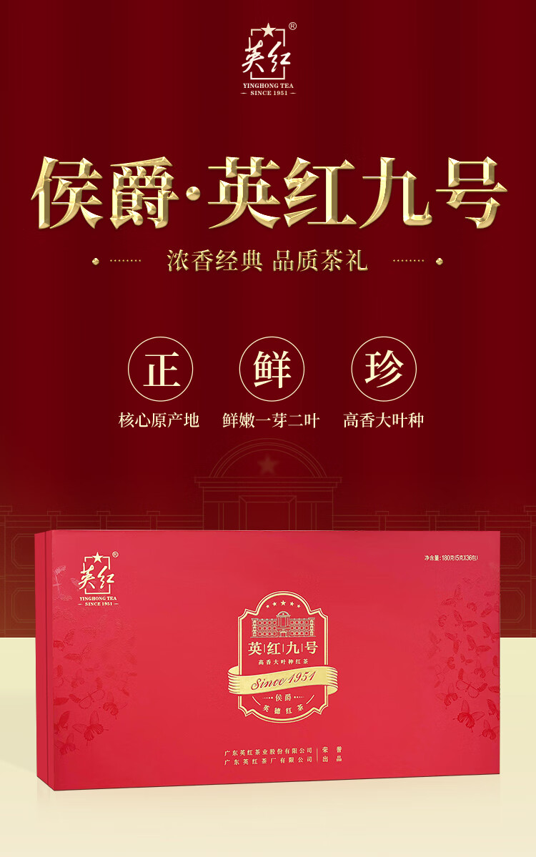 英红·侯爵九号礼盒180克(5克*36泡/盒)单位:盒 红色