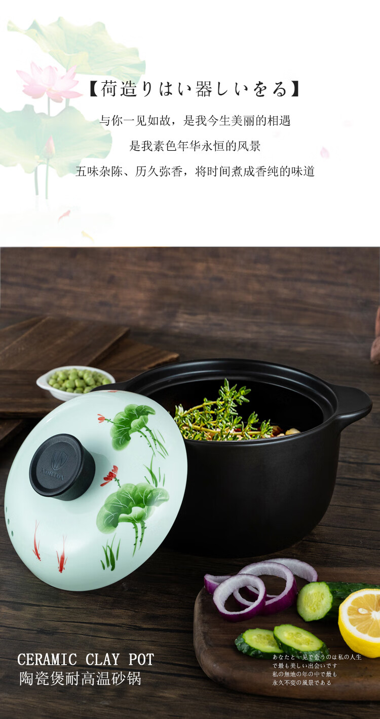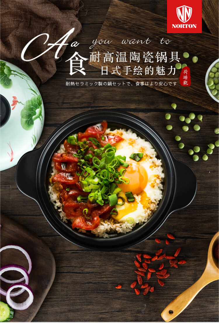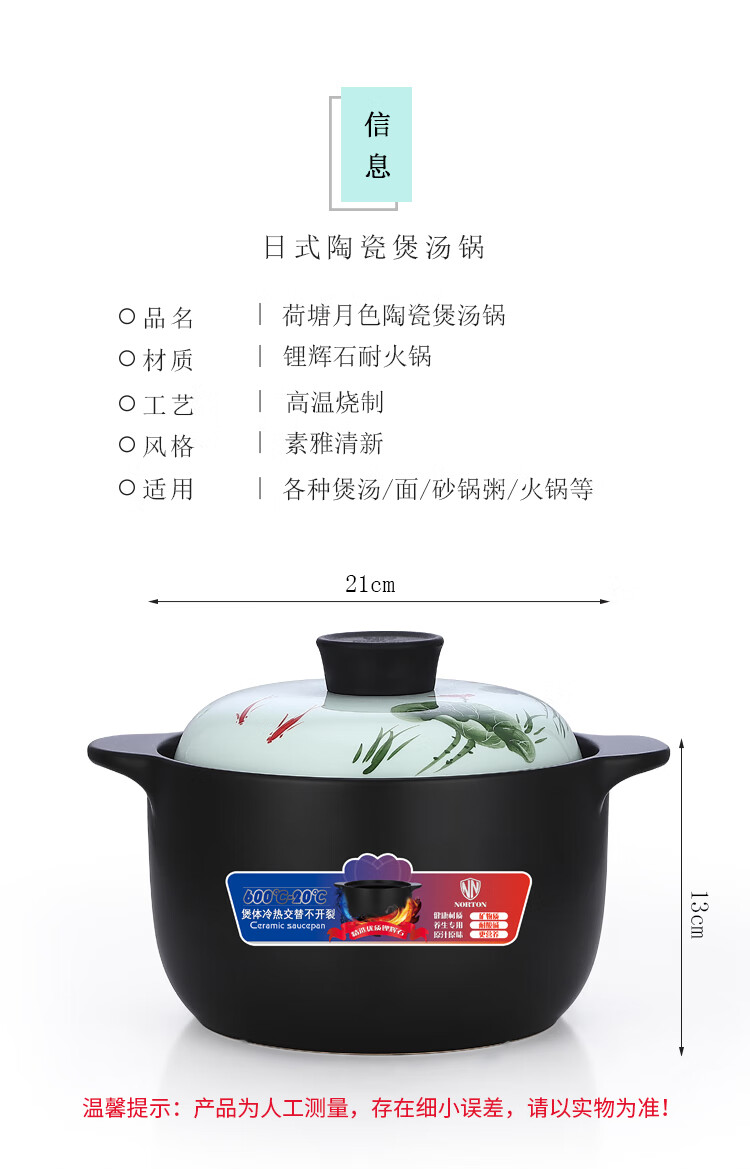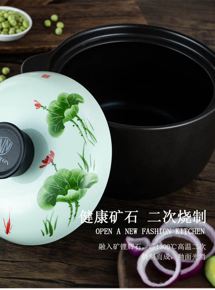 诺顿(NORTON) 荷塘月色养生陶瓷汤煲 3THTYS3000 21*13cm 黑色(单位:套)