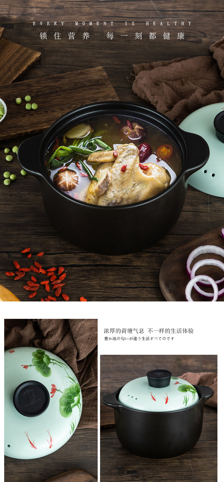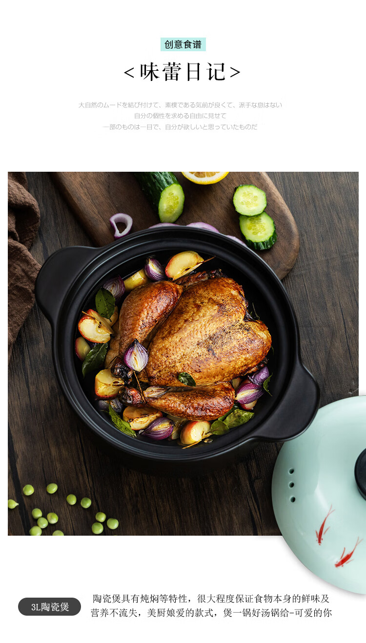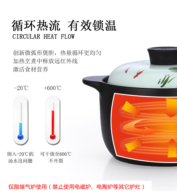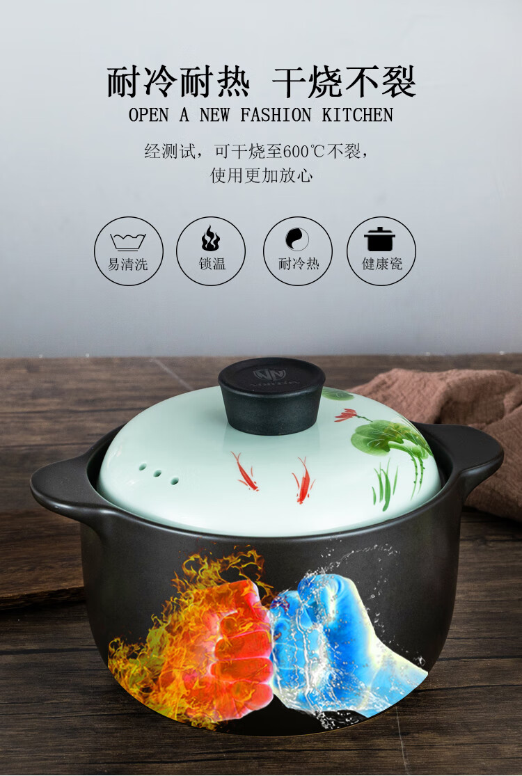 诺顿(NORTON) 荷塘月色养生陶瓷汤煲 3THTYS3000 21*13cm 黑色(单位:套)