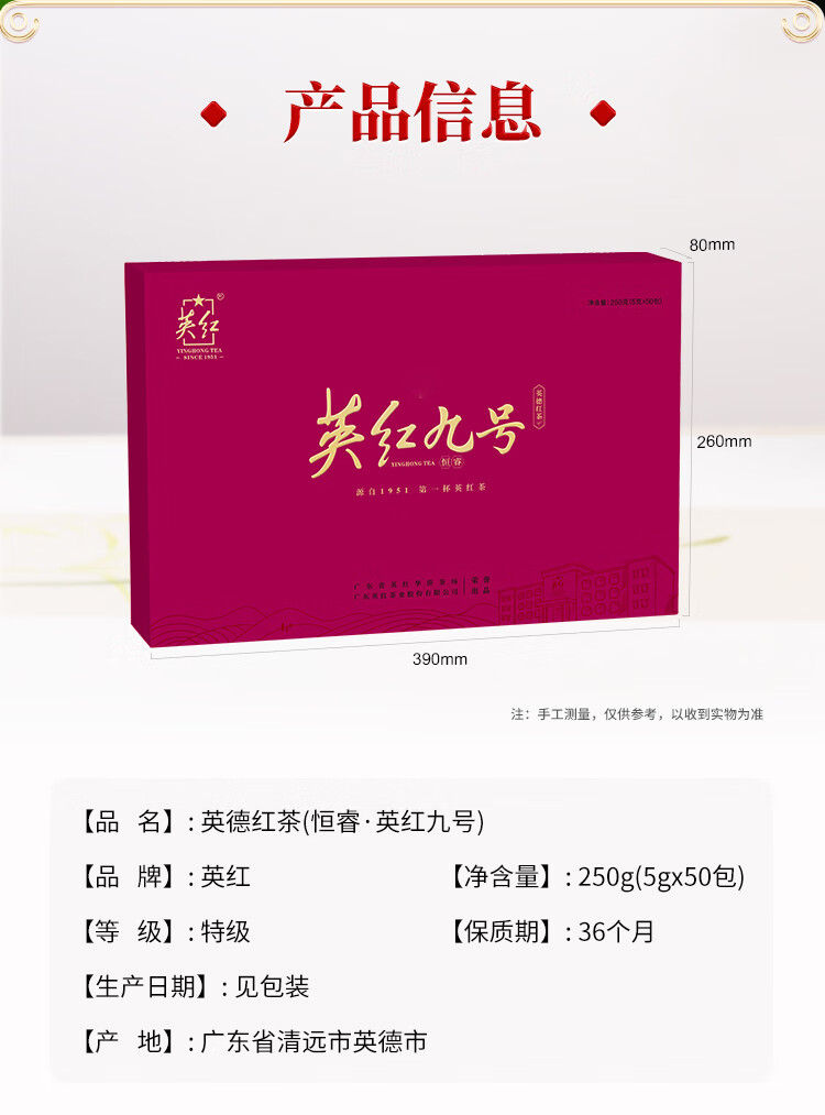 英红·恒睿九号礼盒 250克 (5克*50泡/盒)单位:盒 玫红色
