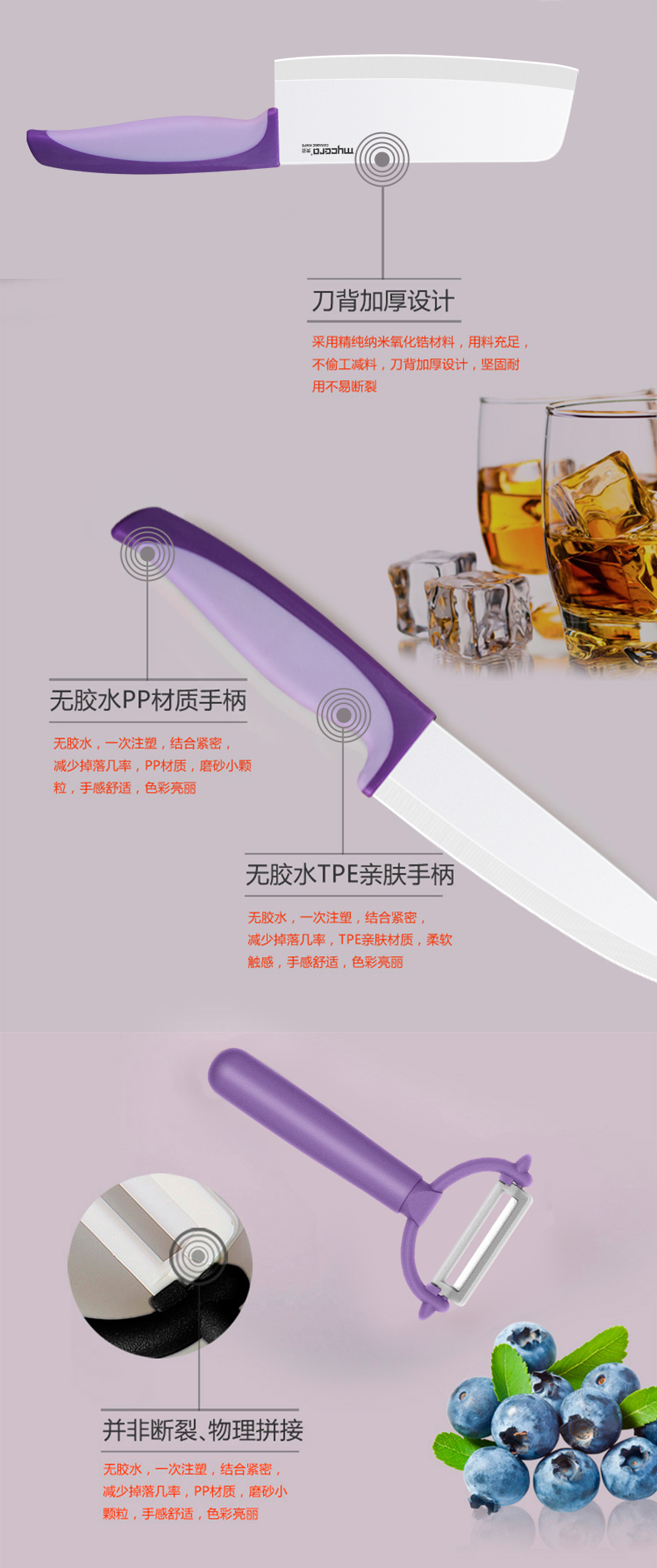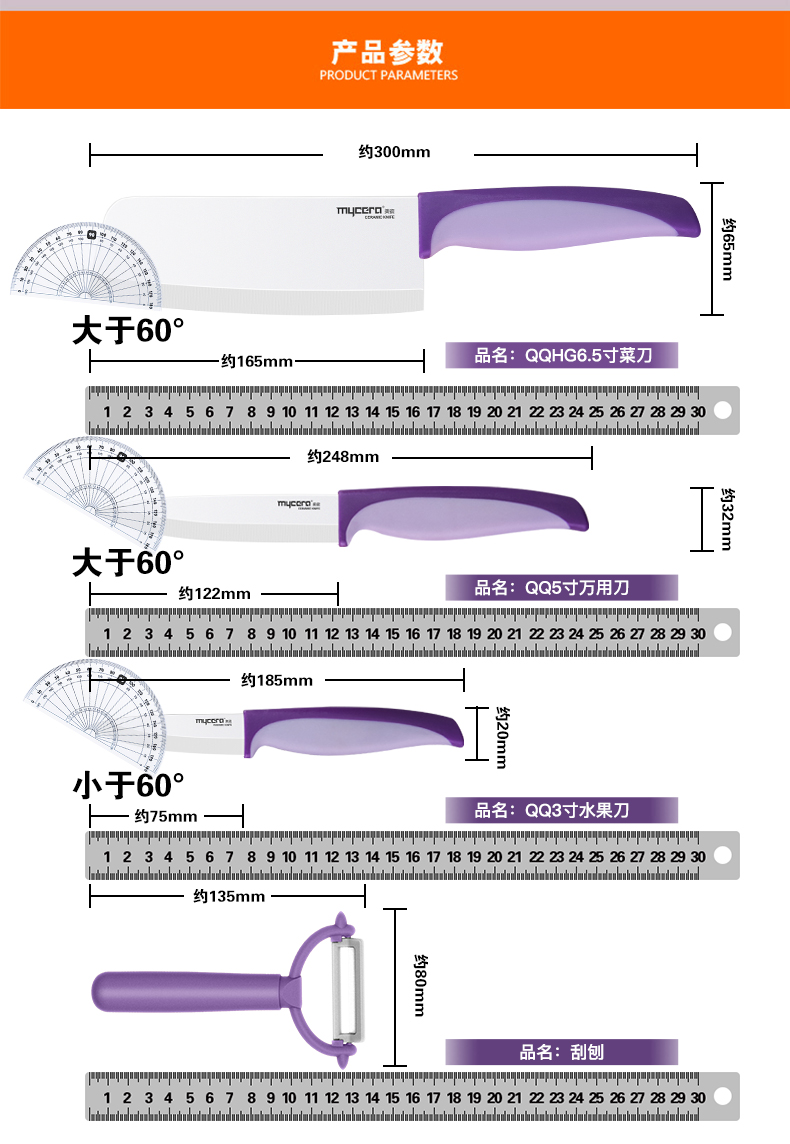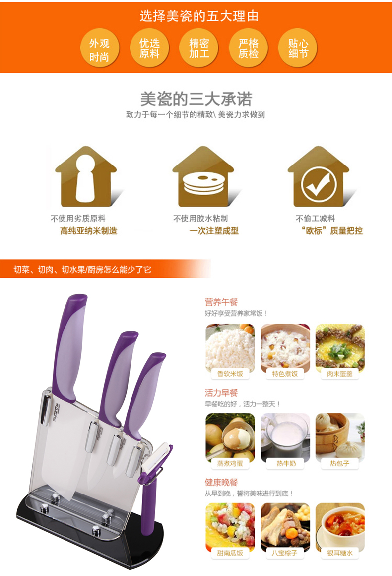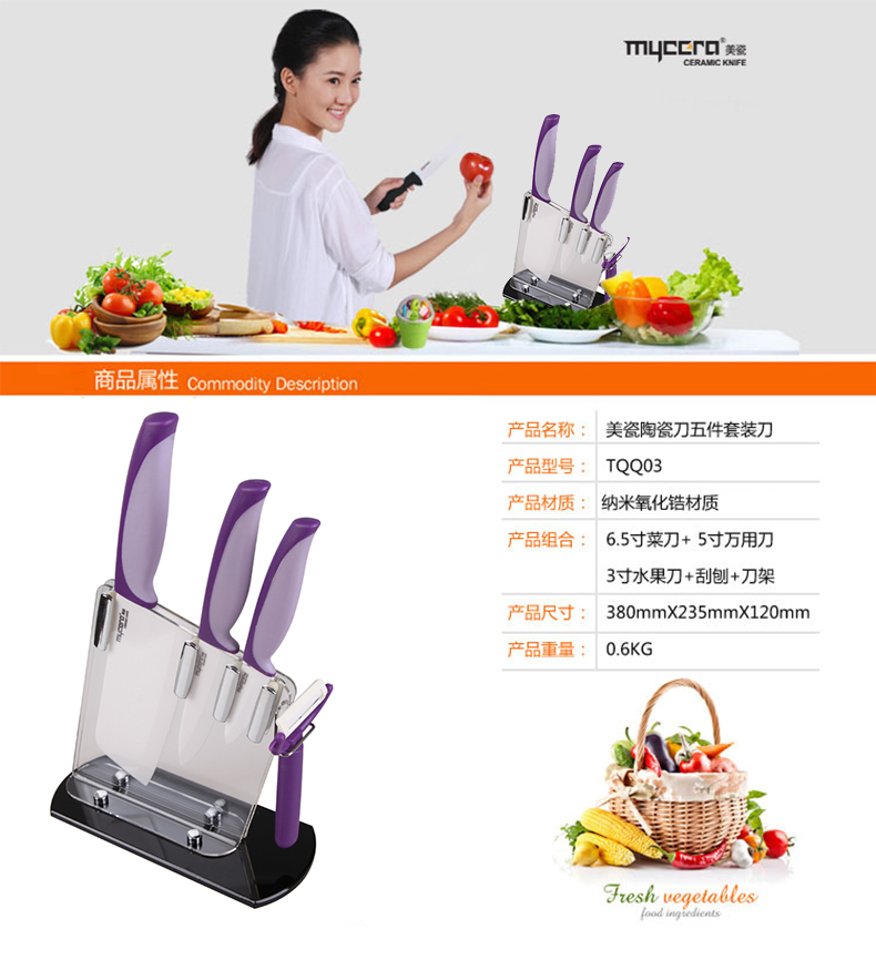 美瓷(mycera)双色系列陶瓷刀厨房套装刀具TQQ03(单位:套) 黄色