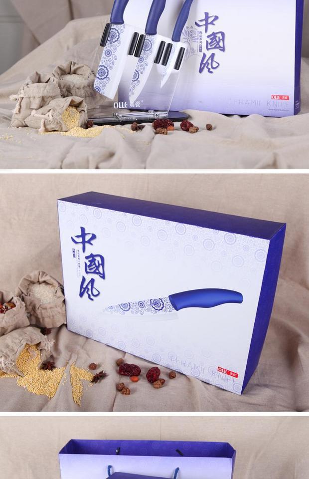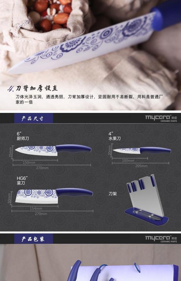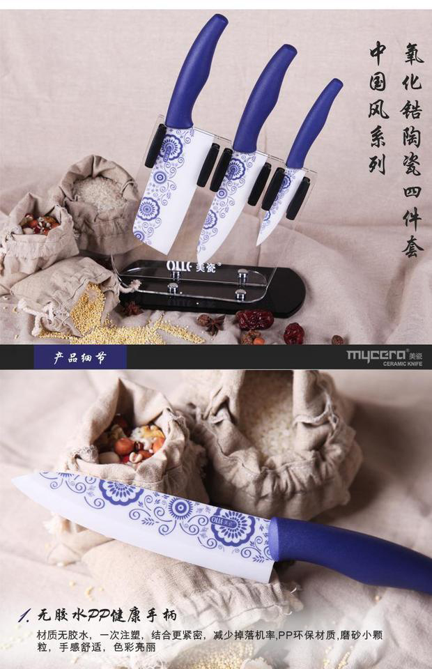 mycera美瓷陶瓷刀合家圆青花瓷系列厨房套装刀具礼盒含刀座四件套TAQ02 蓝色 蓝色