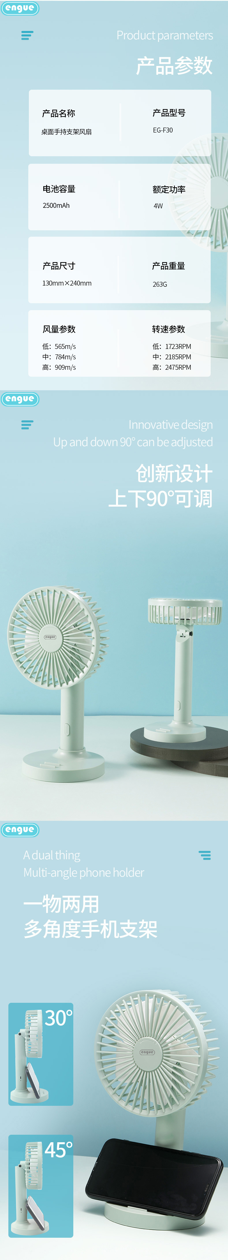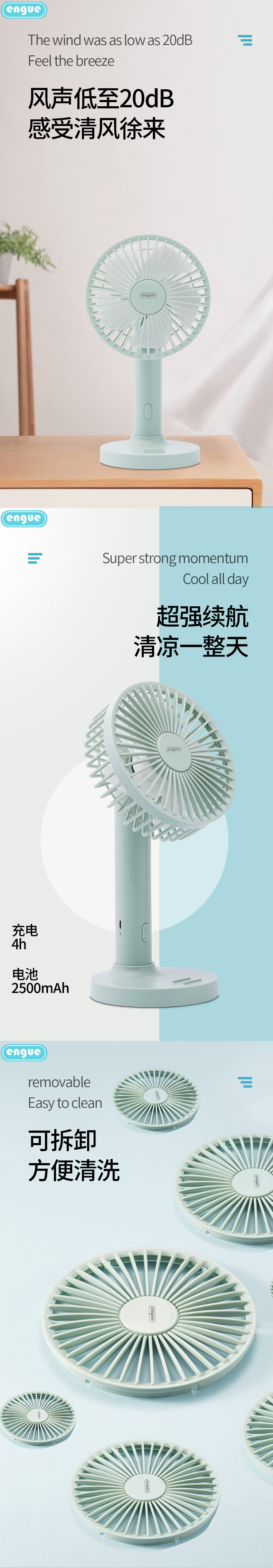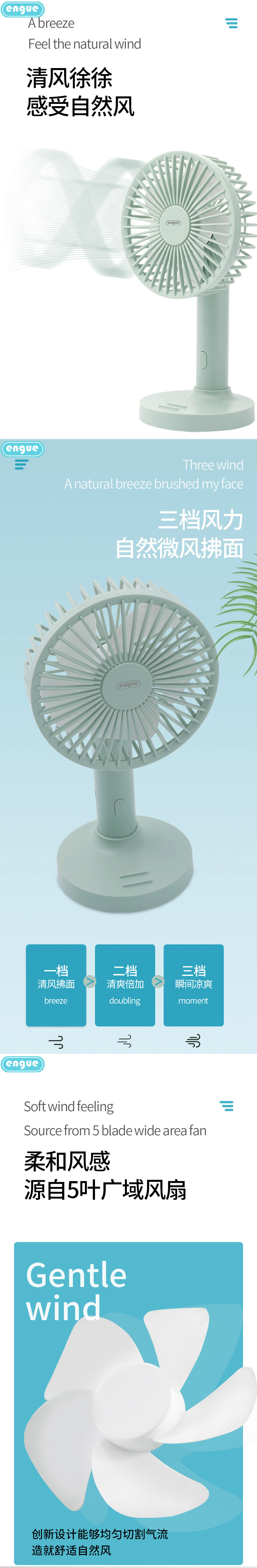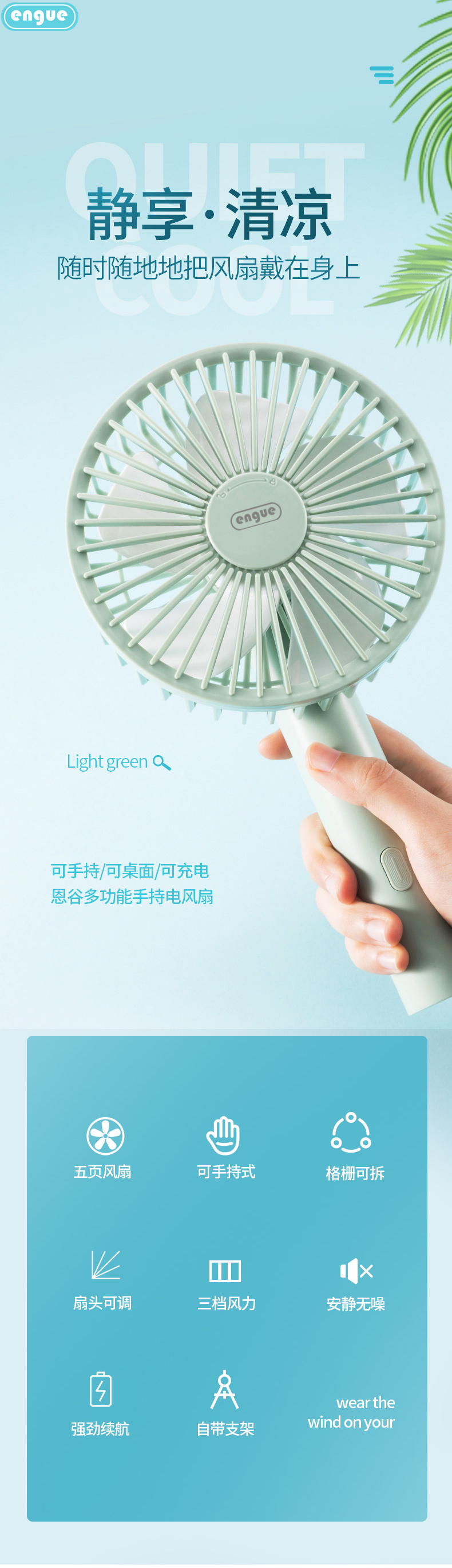 engue恩谷户外随身带迷你电扇USB充电小电扇学生手持宿舍台式桌面小电扇 EG-F30 绿色