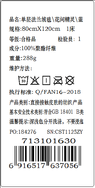 富安娜法兰绒毯花间精灵80*120CM胶袋装 花间精灵