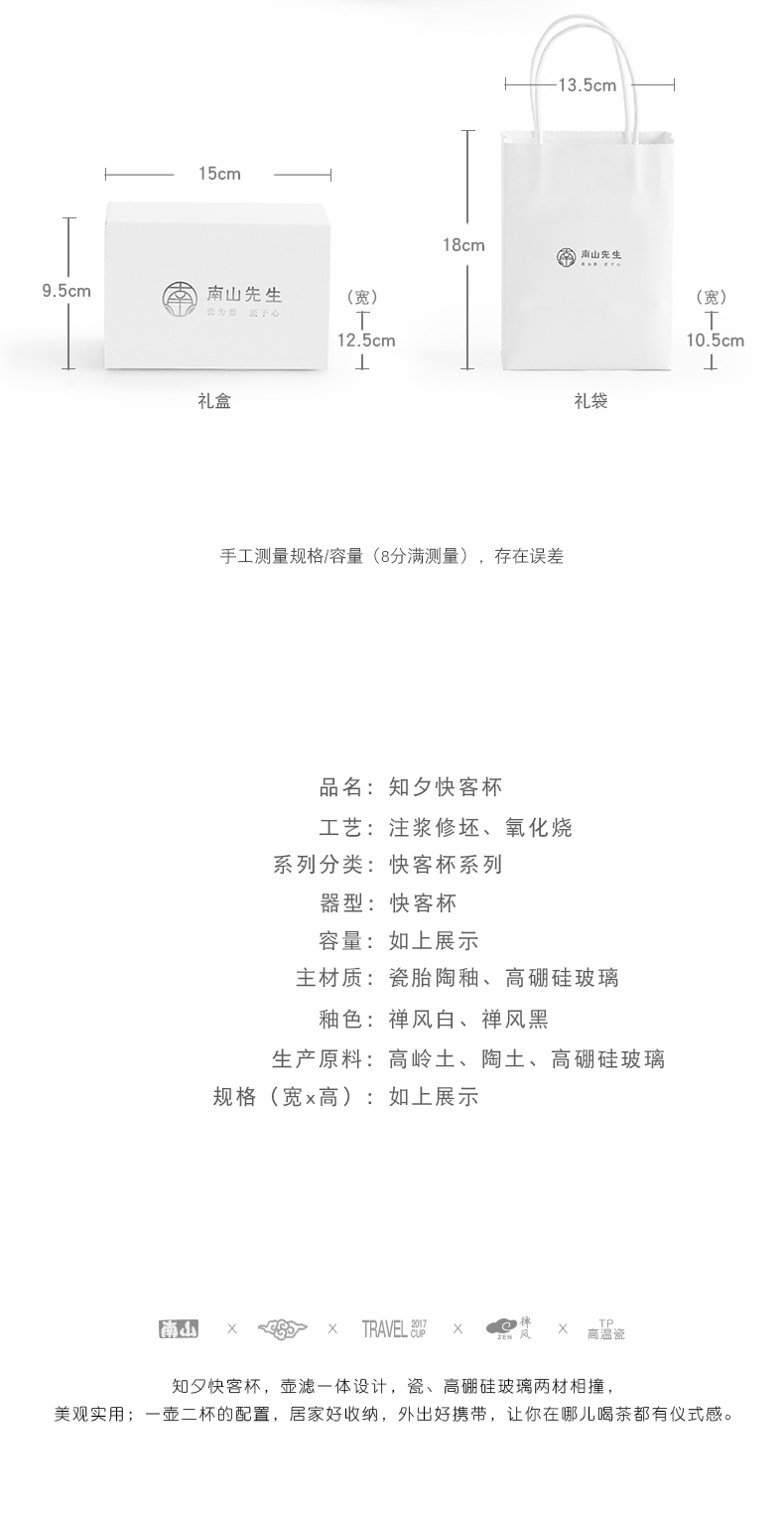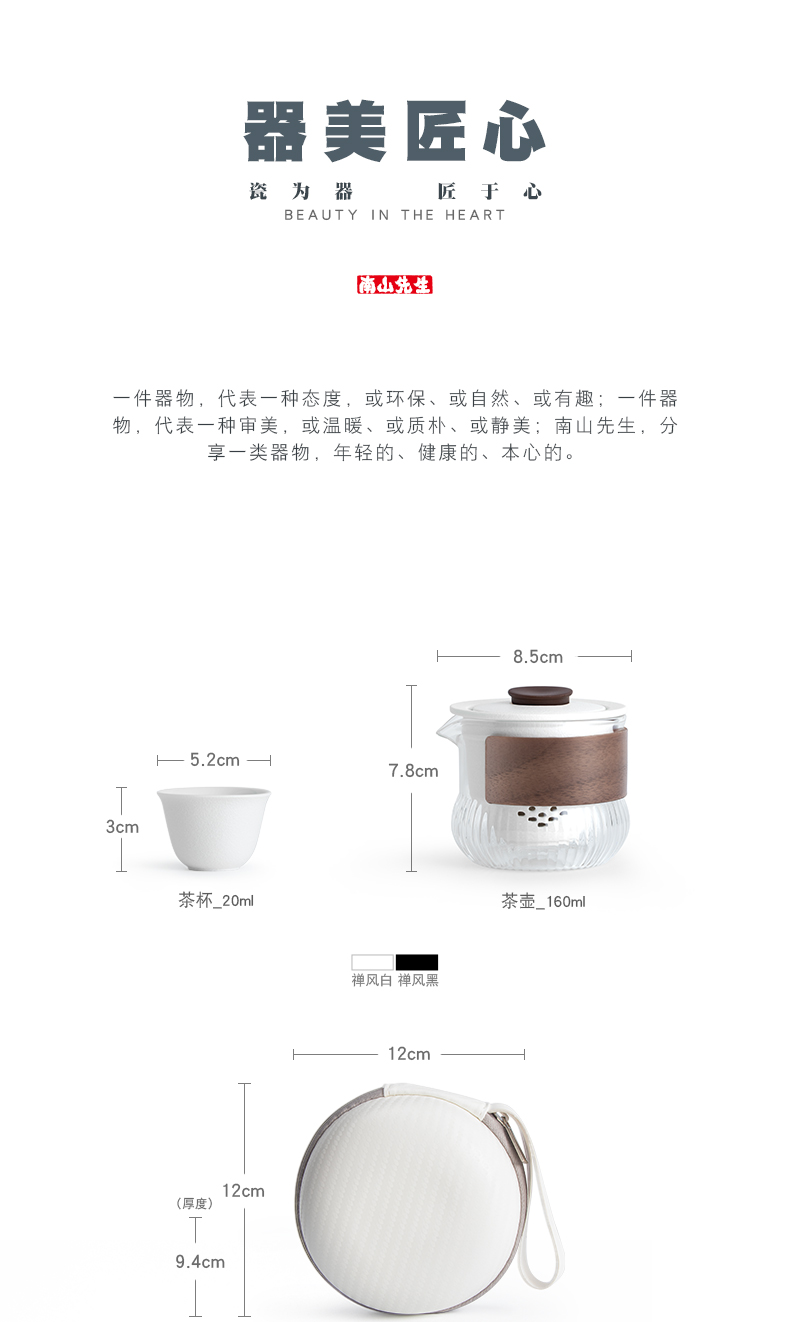 南山先生 旅行茶具套装便携茶具 知夕快客杯 禅风白一壶二杯 单位:套