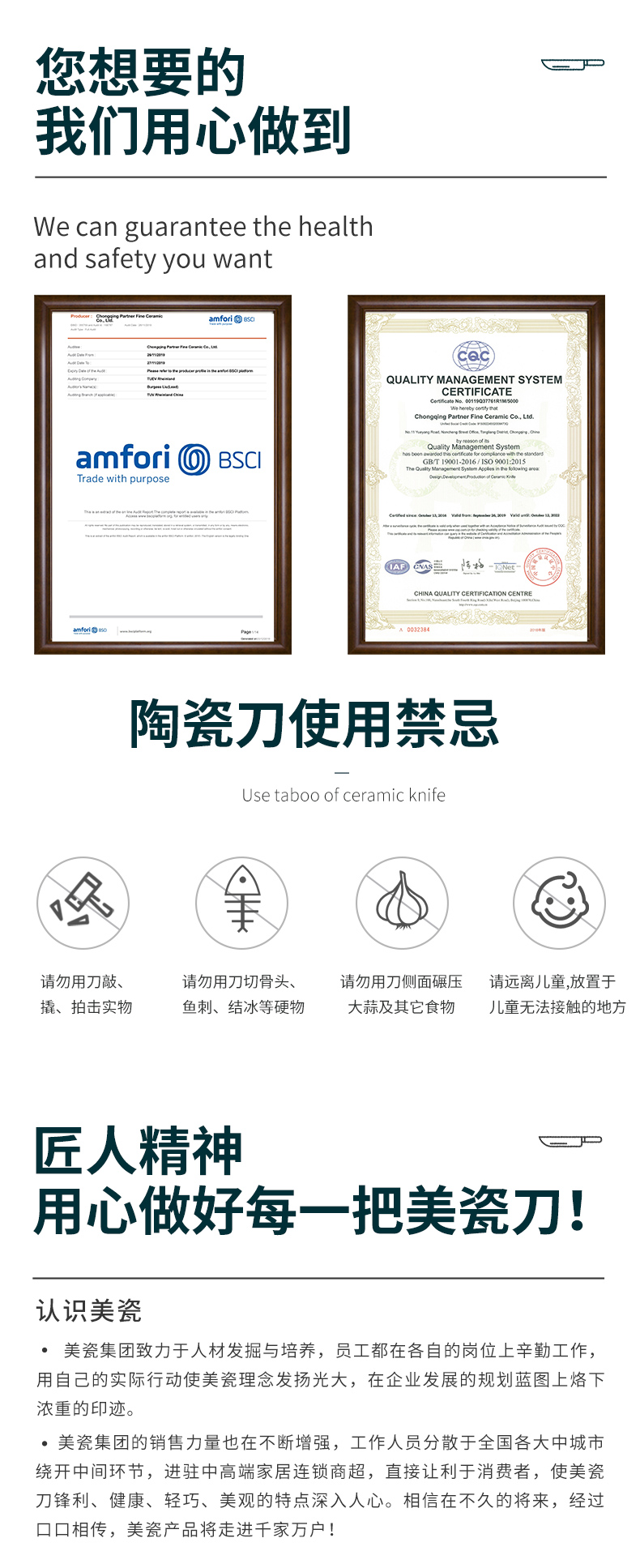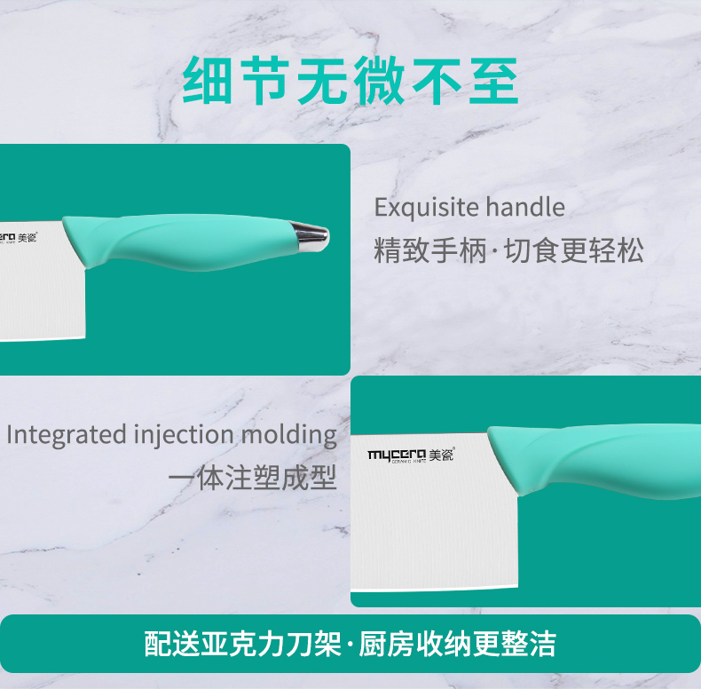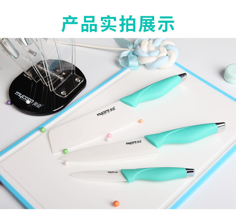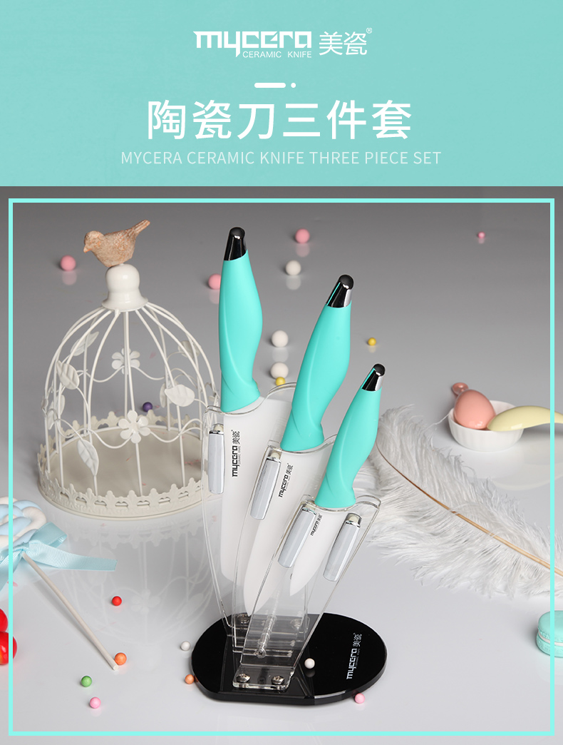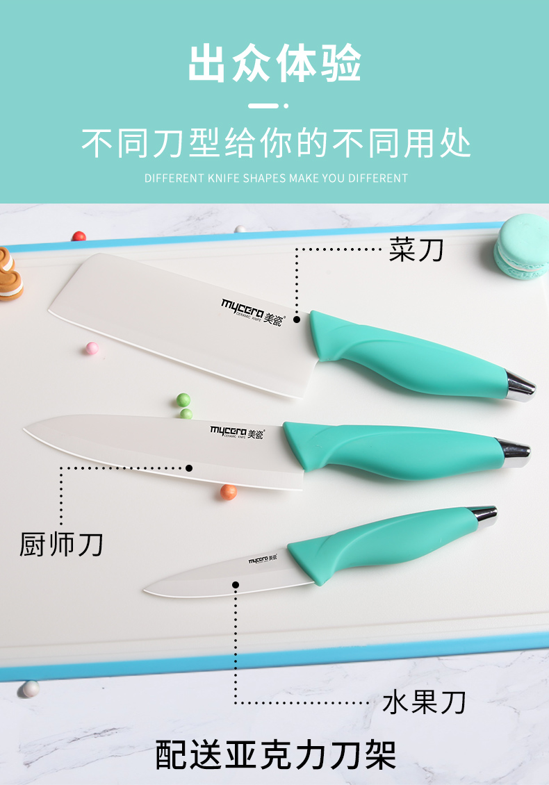 mycera美瓷陶瓷刀艾利系列厨房套刀四件套带刀座TF02 图片色 随机