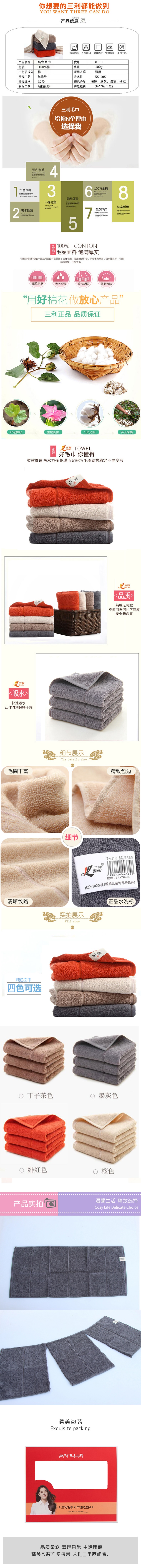 三利纯色面2条礼盒装毛巾(单位:套) 8110/盒