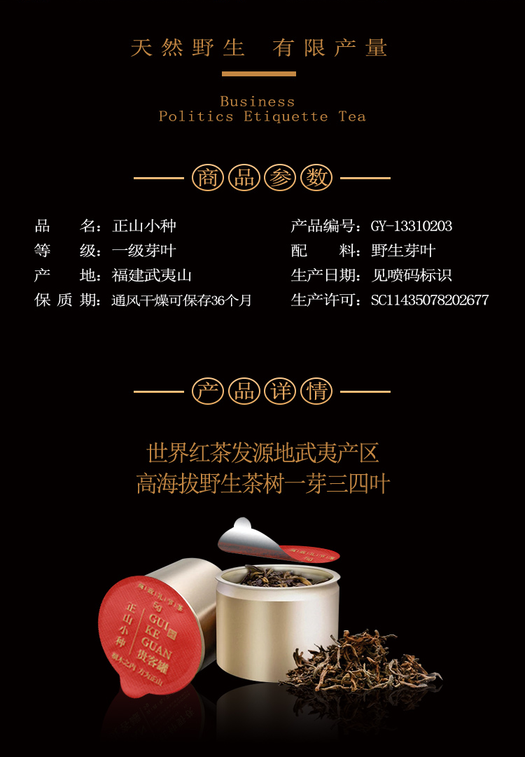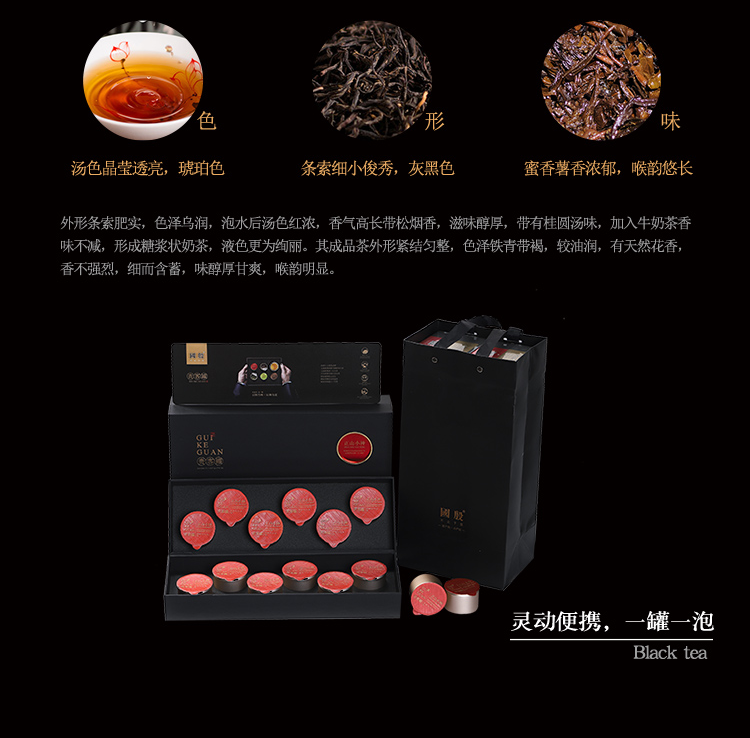 国殷 贵客罐|正山小种武夷山红茶/60克*12罐/盒 黑色/红色