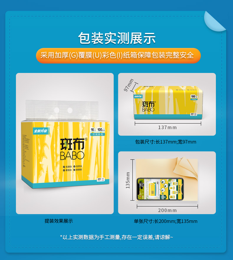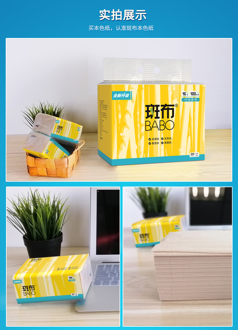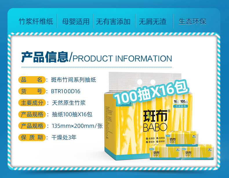 斑布BASE系列软抽135mm 3层/100抽 16包/提 BCR100D16 黄色