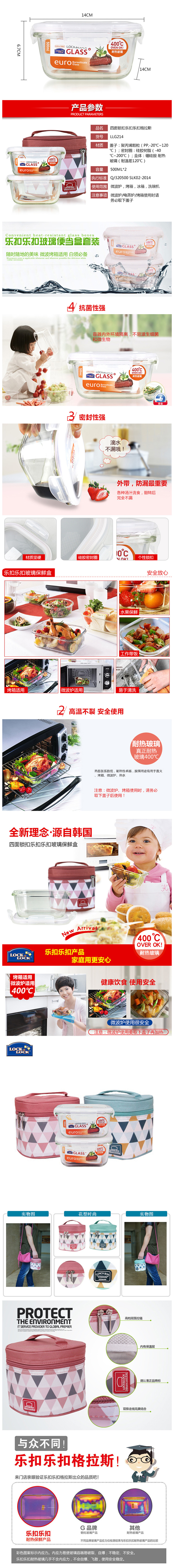 乐扣乐扣乐扣耐热玻璃保鲜盒两件套LLG214S904B/P (单位:套) 粉色