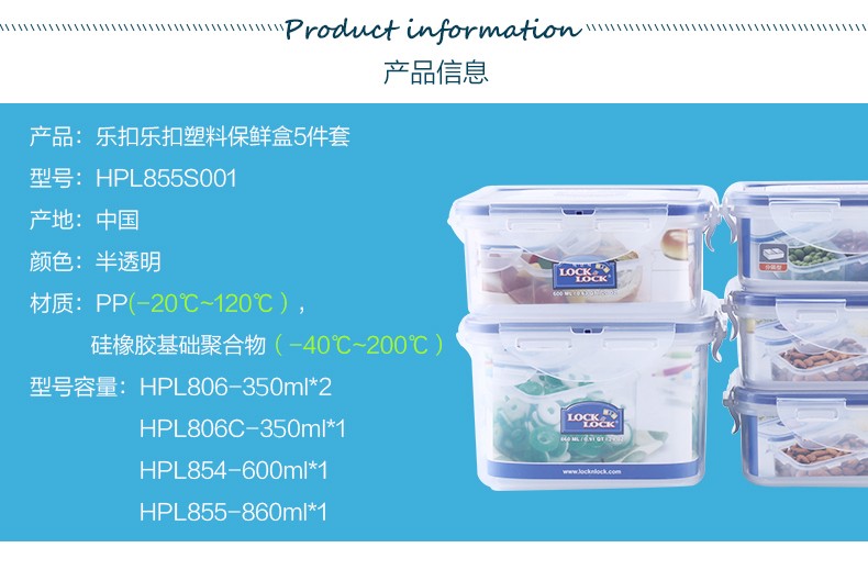 乐扣乐扣保鲜饭盒5件套HPL855S001(单位:套) 白色