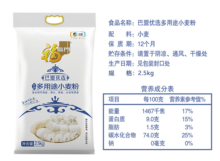 中粮福临门巴盟优选多用途小麦粉2.5KG(单位:袋) 本白色