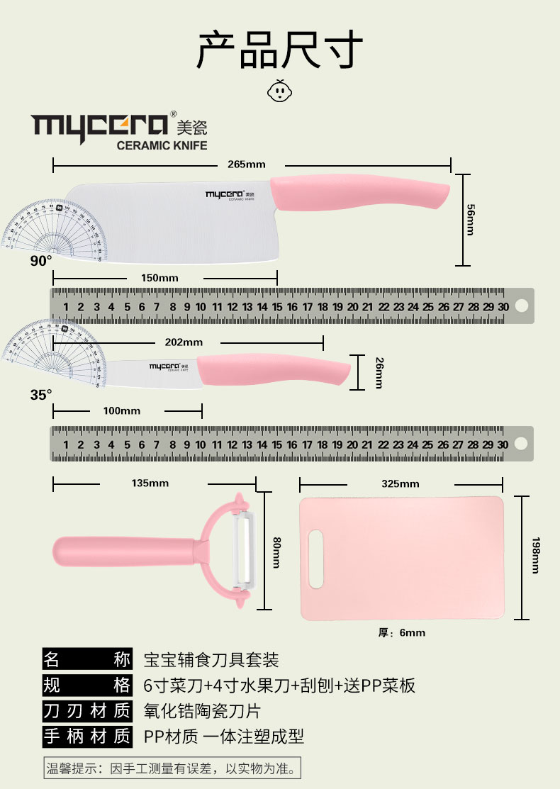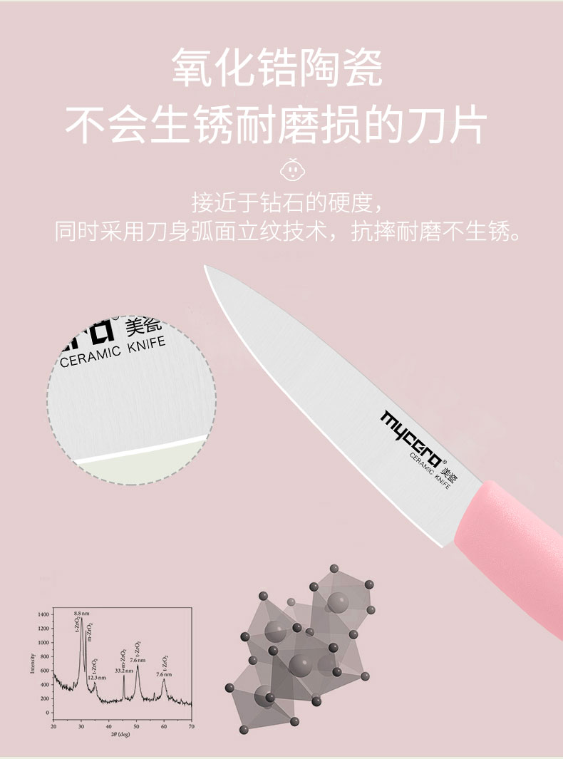 美瓷(mycera)彩虹系列母婴辅食陶瓷刀TYW03P(单位:套) 粉色