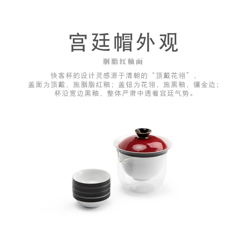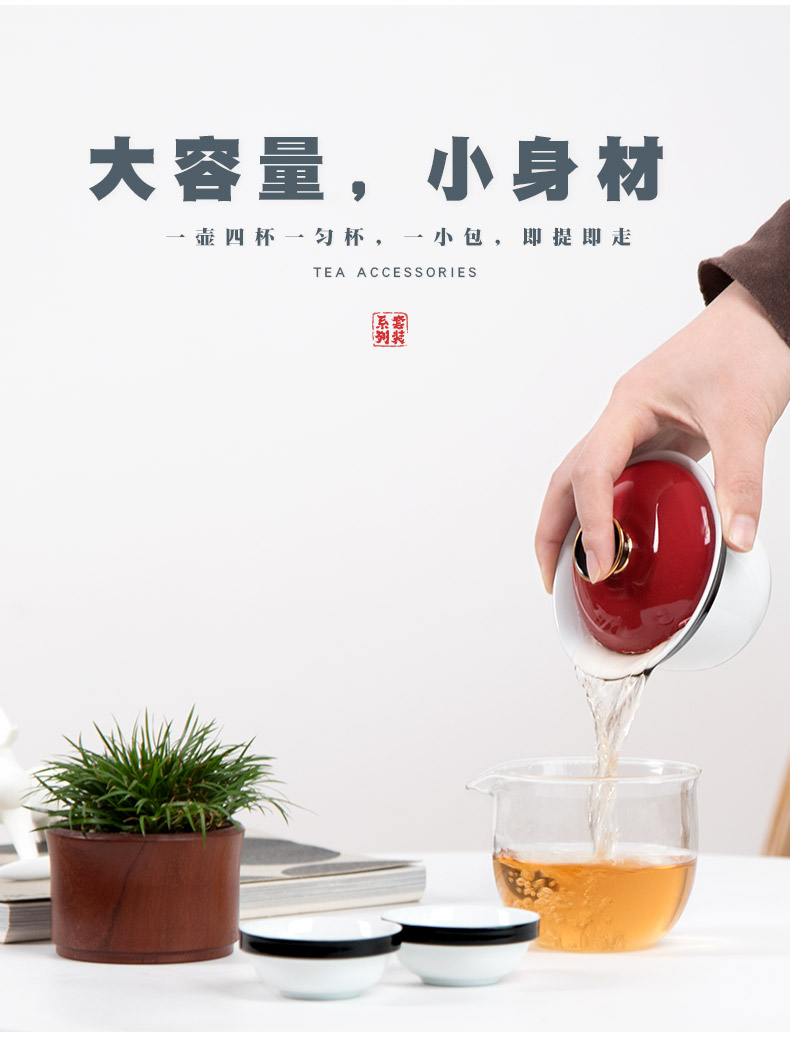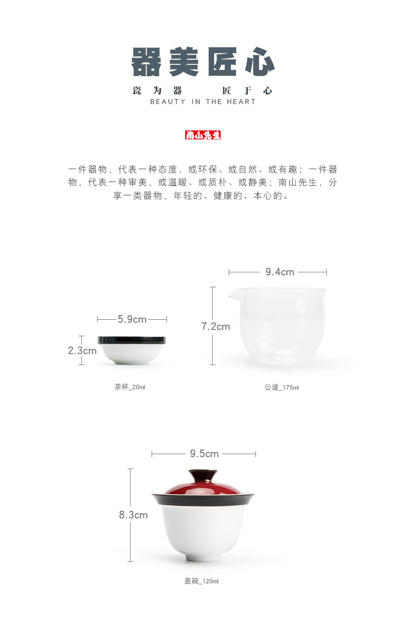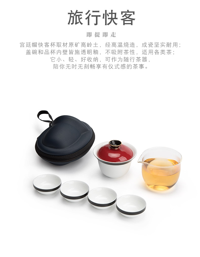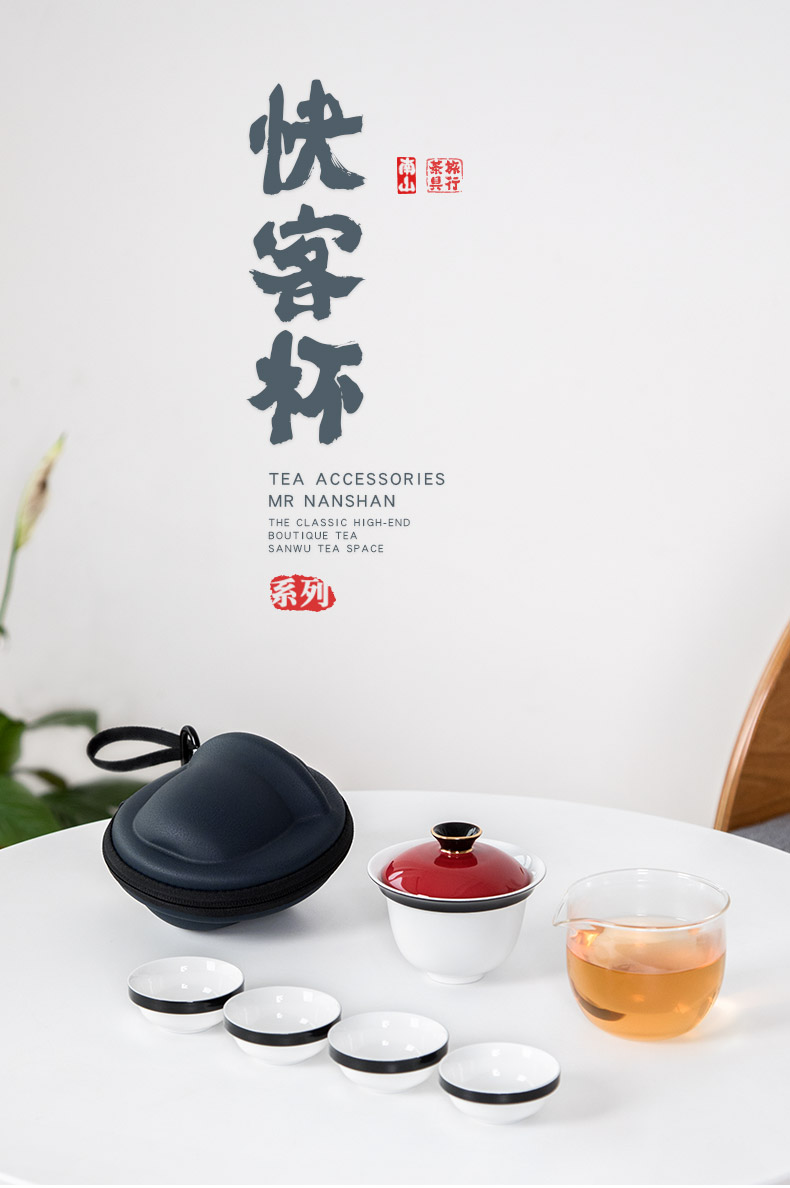 南山先生 宫廷帽快客杯户外旅行陶瓷功夫茶具一盖碗一海四杯