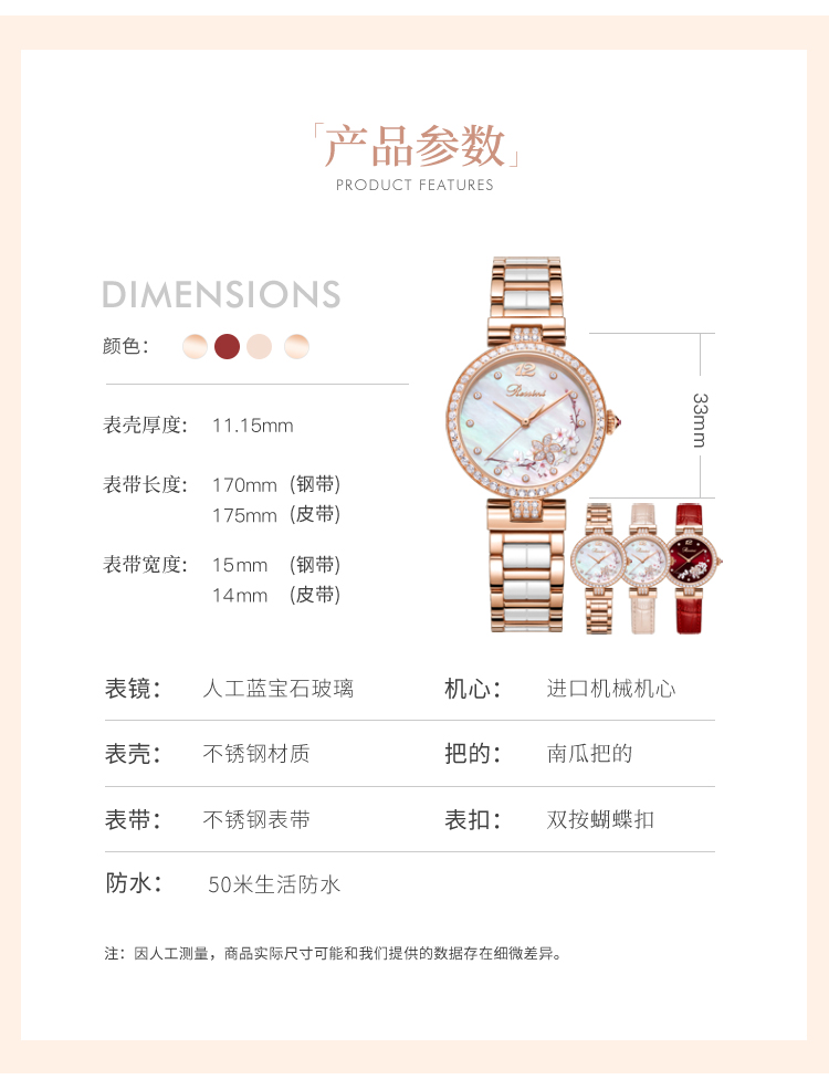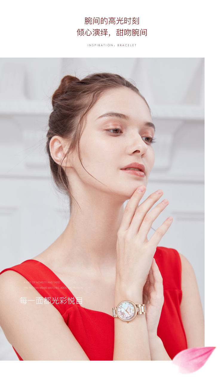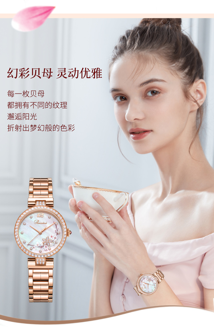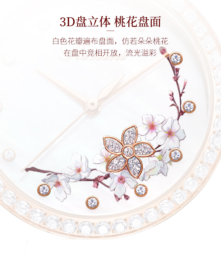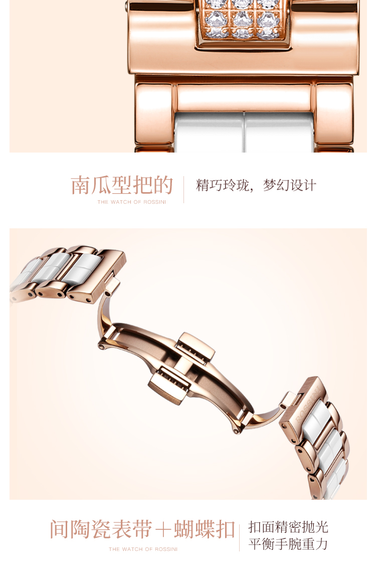 Rossini罗西尼典美系列自动机械手表桃花贝母盘间玫瑰金陶瓷带5978G01B 赠桃花胸针礼盒 只 玫瑰金