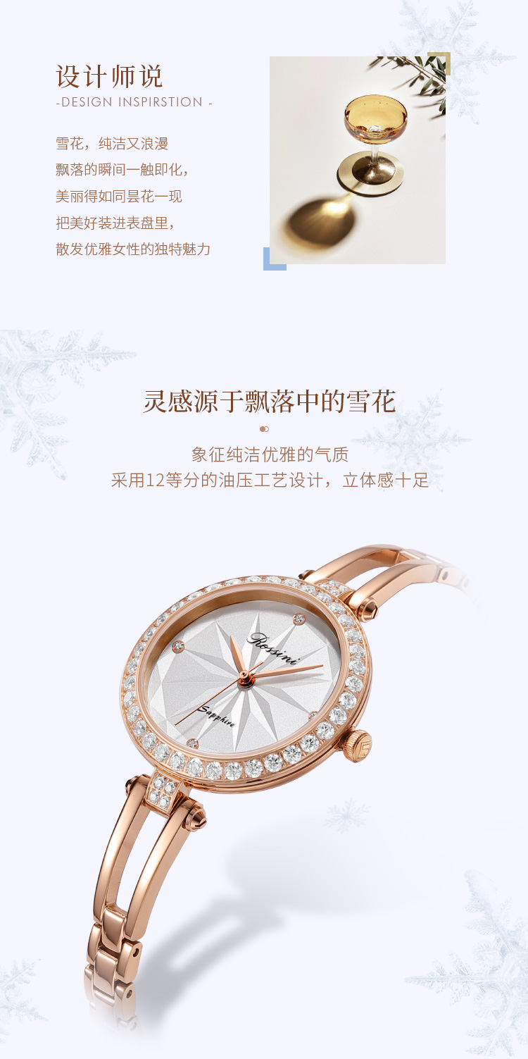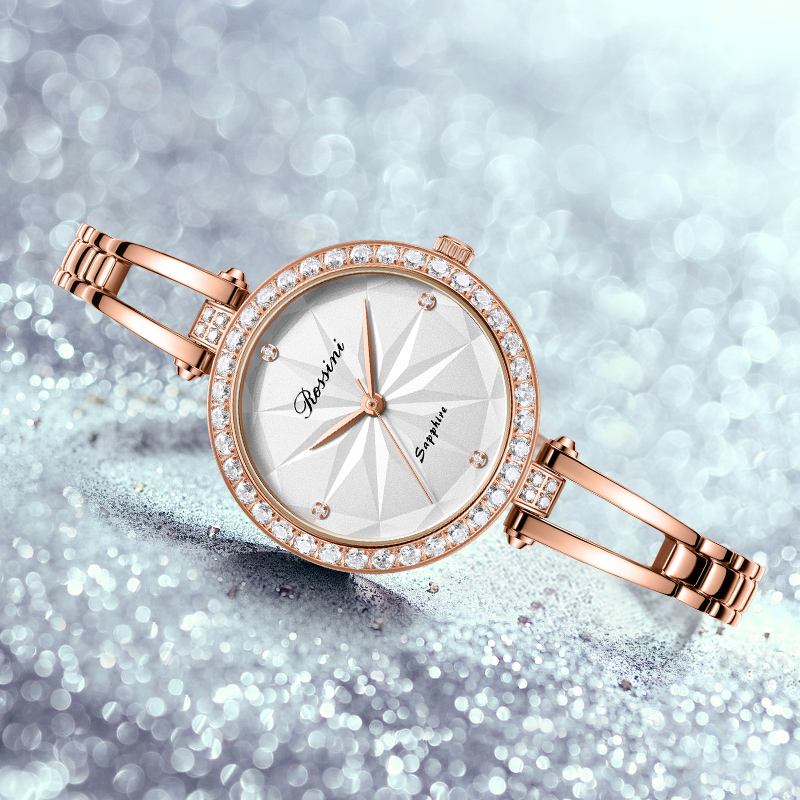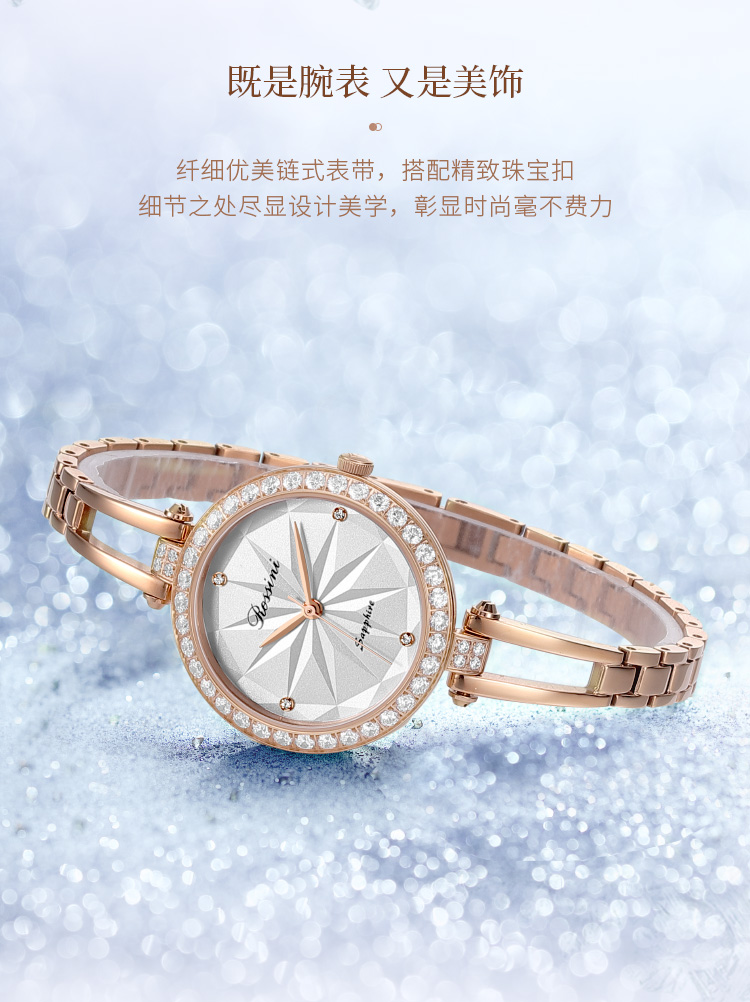 Rossini罗西尼 启迪系列时尚石英女表镶钻雪花黑盘玫瑰金钢带女表5988G04C(单位:只) 黑色